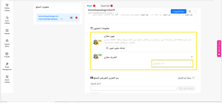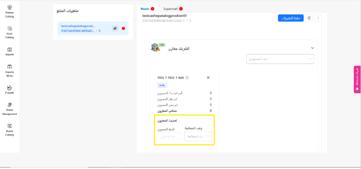 قم بتحديد مستودعك باستخدام noon_warehouse_code أو partner_warehouse_code وقم بتحديث stock_gross_value وprocessing_time حسب الحاجة.