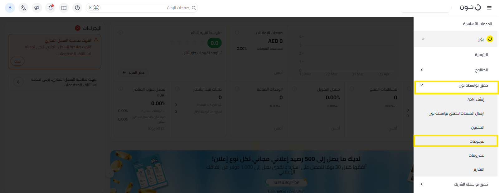 - انقر على "حقق بواسطة نون" ثم انقر على "مرجوعات".