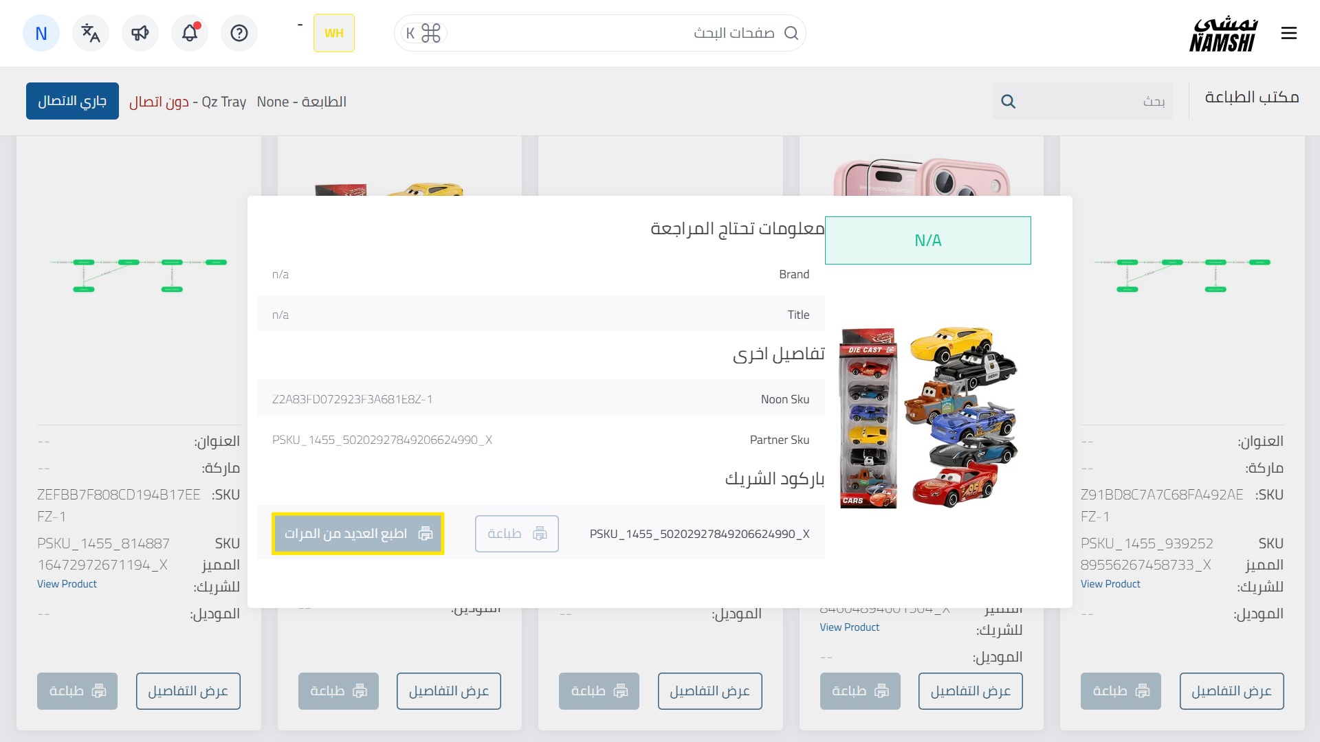 للطابعات غير ال Zebra: يمكنكم طباعة الباركود باستخدام مولد مجاني عبر الإنترنت.