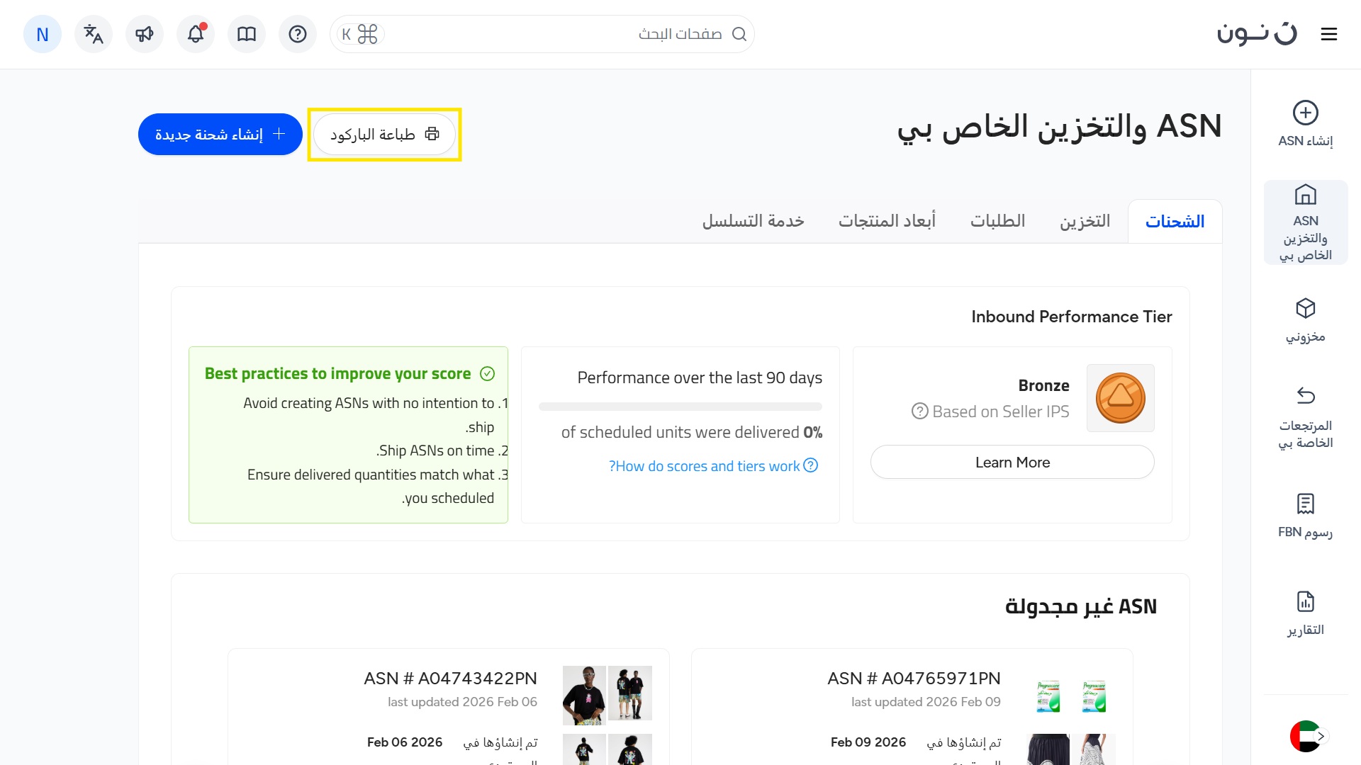 لضمان عملية تحقق سلسة عند بيع المنتجات عبر نموذجي البيع "حقق بواسطة نون" (FBN) أو "حقق بواسطة الشريك" (FBP)، تعتبر اضافة الباركود على جميع المنتجات إلزامية. يلعب الباركود دورًا أساسيًا في تحقيق دقة في معالجة الطلبات، وتتبع دقيق للمنتج خلال عملية التوصيل، وإجراء فحوصات الجودة.