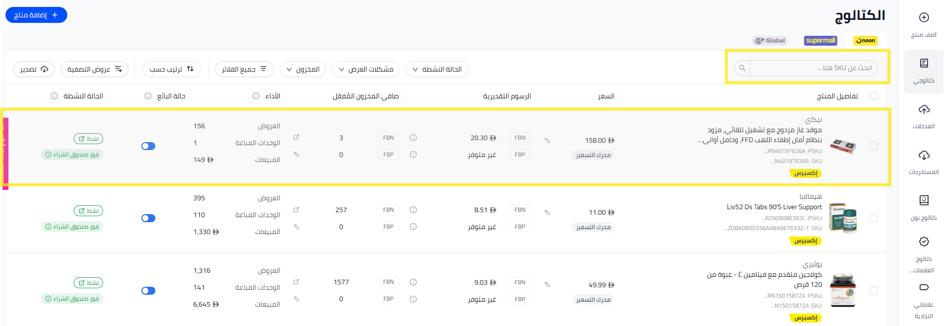 - ابحث عن الـ SKU الذي ترغب في تحديث الضمان الخاص به.