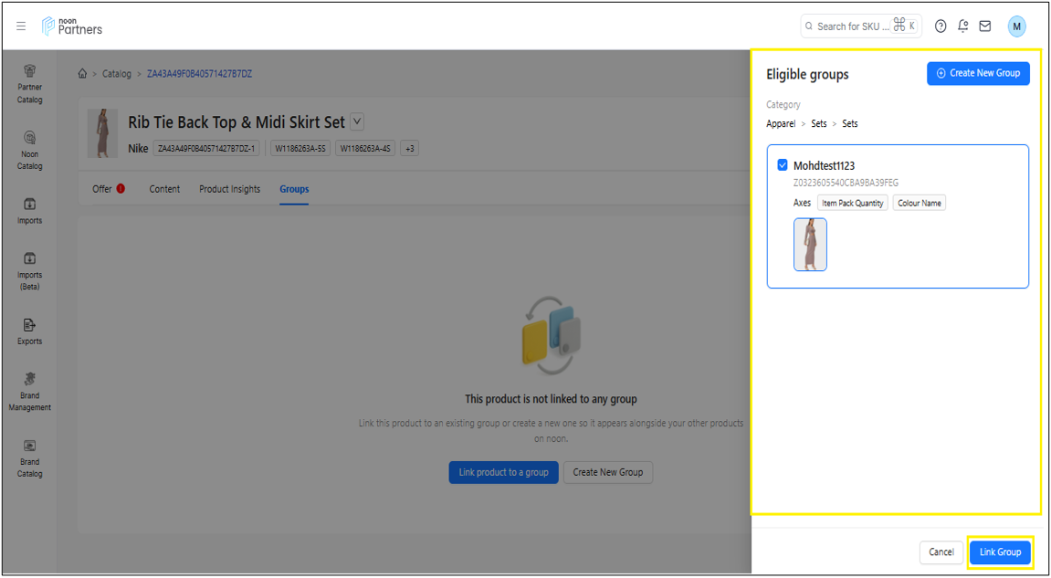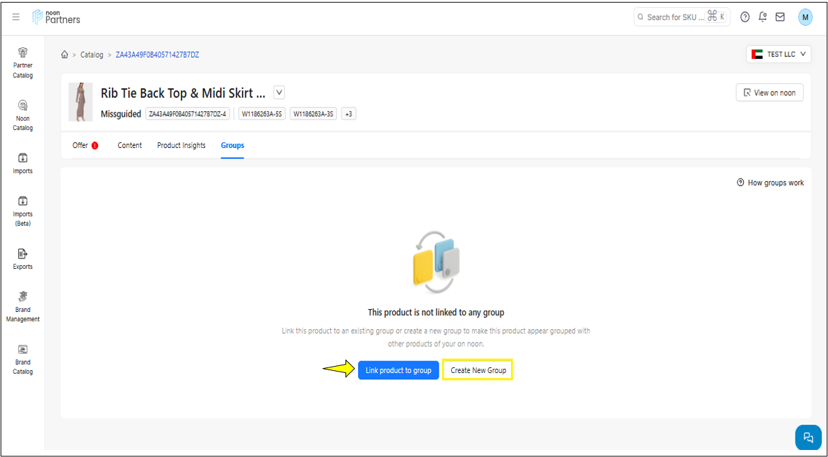 ملاحظة: إذا لم يكن SKU مرتبطًا بأي مجموعة، فستجد خيار ربطه بمجموعة موجودة أو إنشاء مجموعة جديدة.