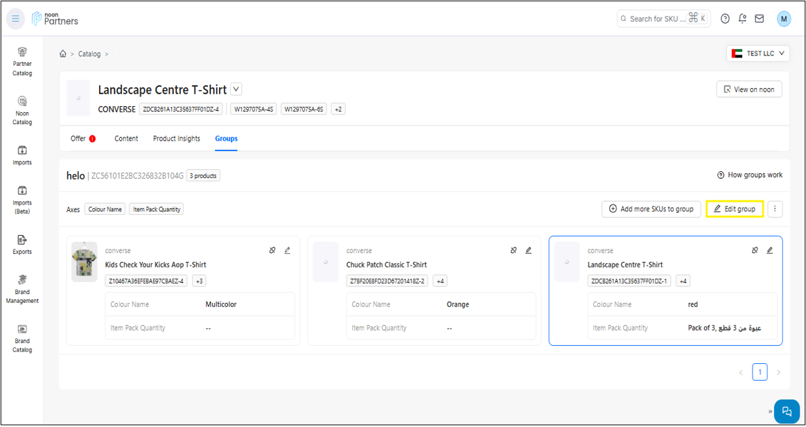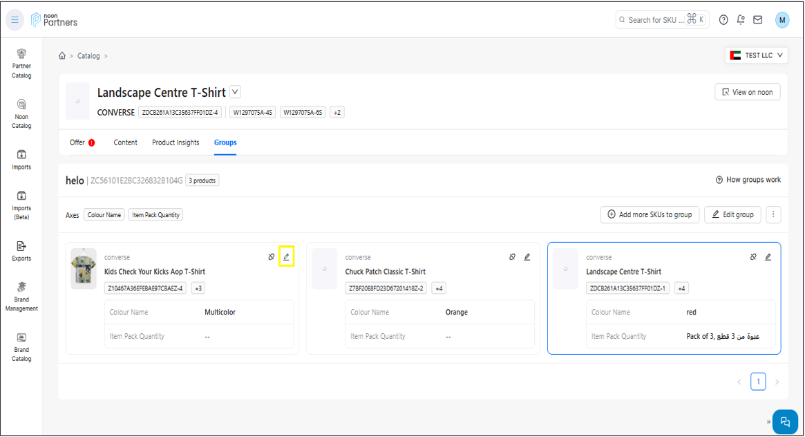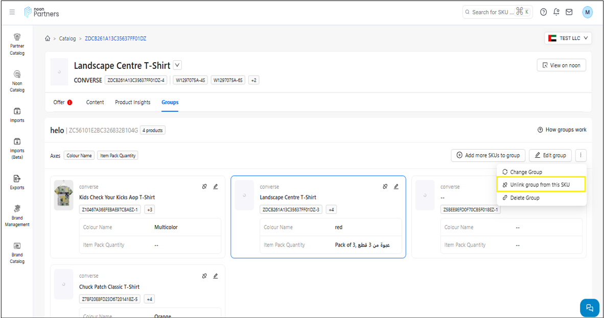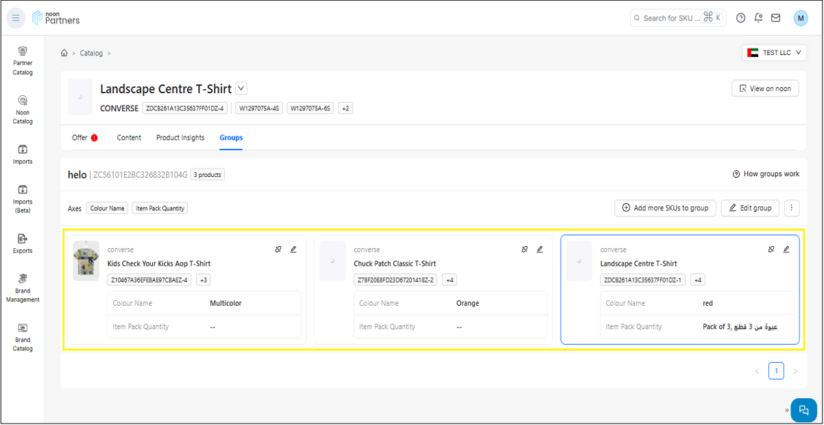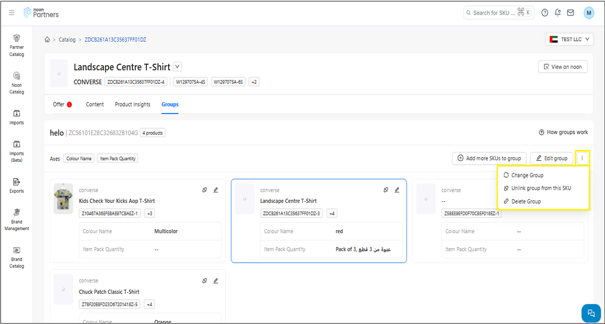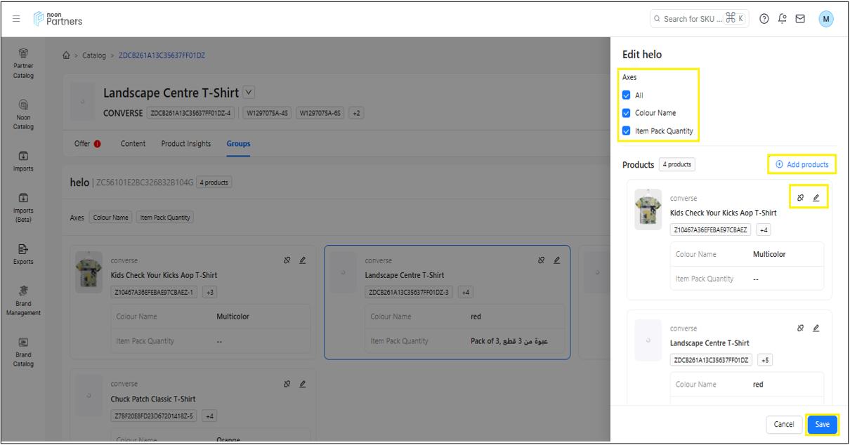 المجموعات: يتيح لك هذا القسم تجميع رموز المنتج الرئيسية المختلفة التي تنتمي إلى نفس الفئة في مجموعة واحدة ذات سمة متغيرة واحدة، وهي اللون.