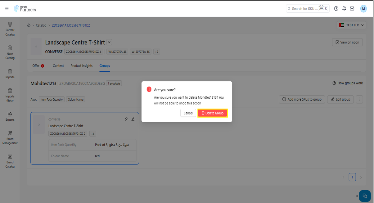ملاحظة: سيؤدي حذف المجموعة إلى إزالة وحدات SKU فقط من التجميع. ستظل وحدات SKU الفردية متوفرة في الكتالوج.
