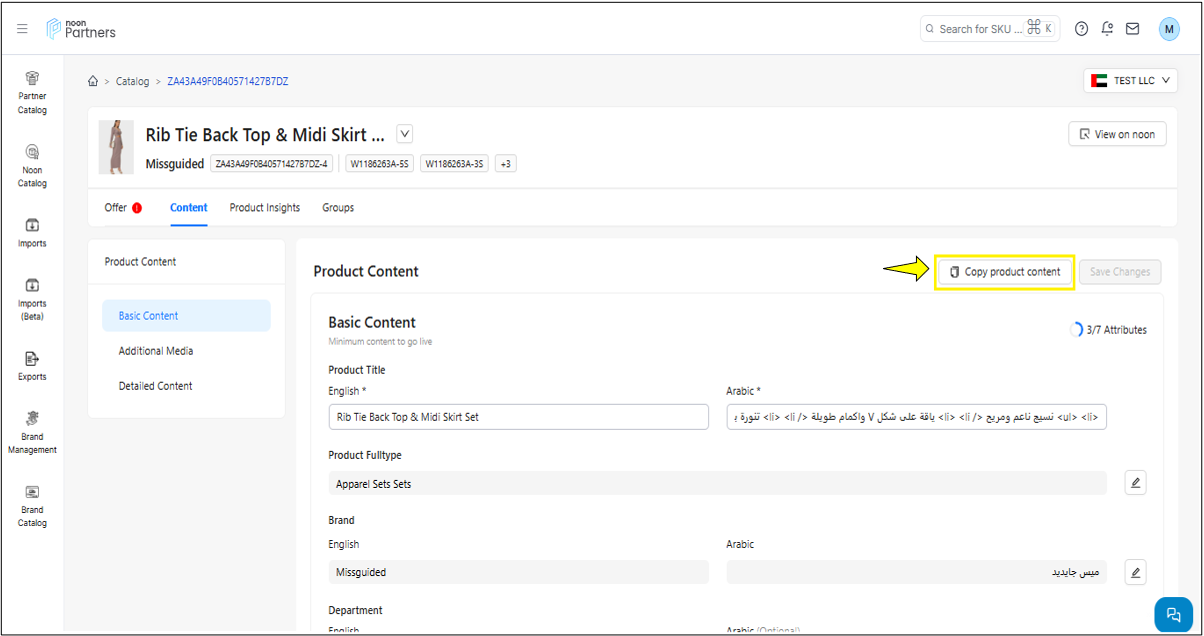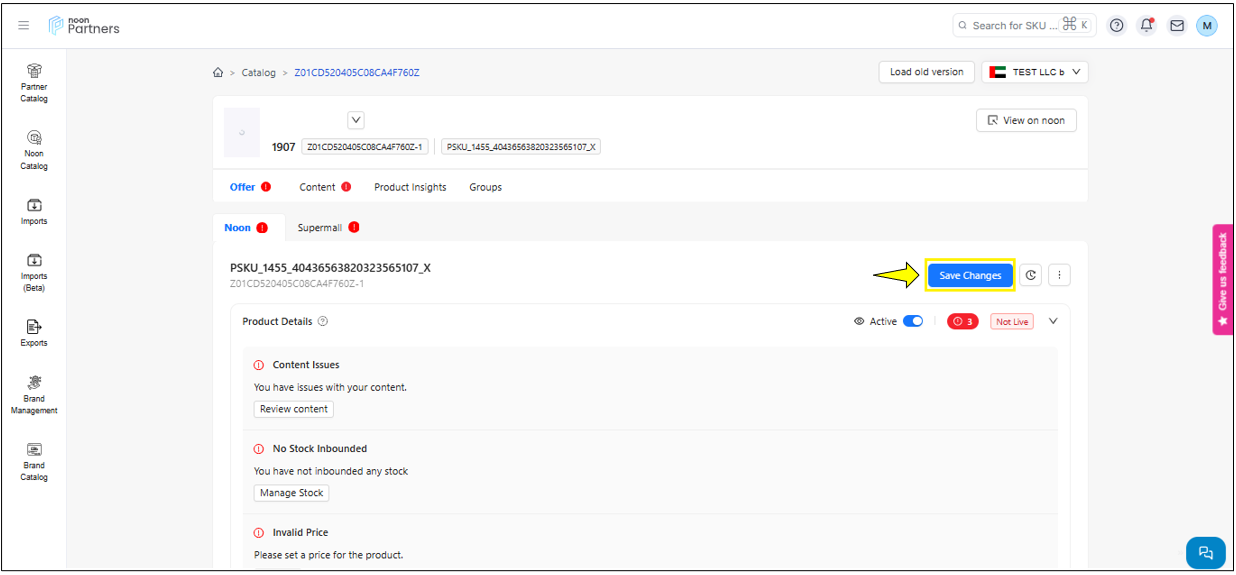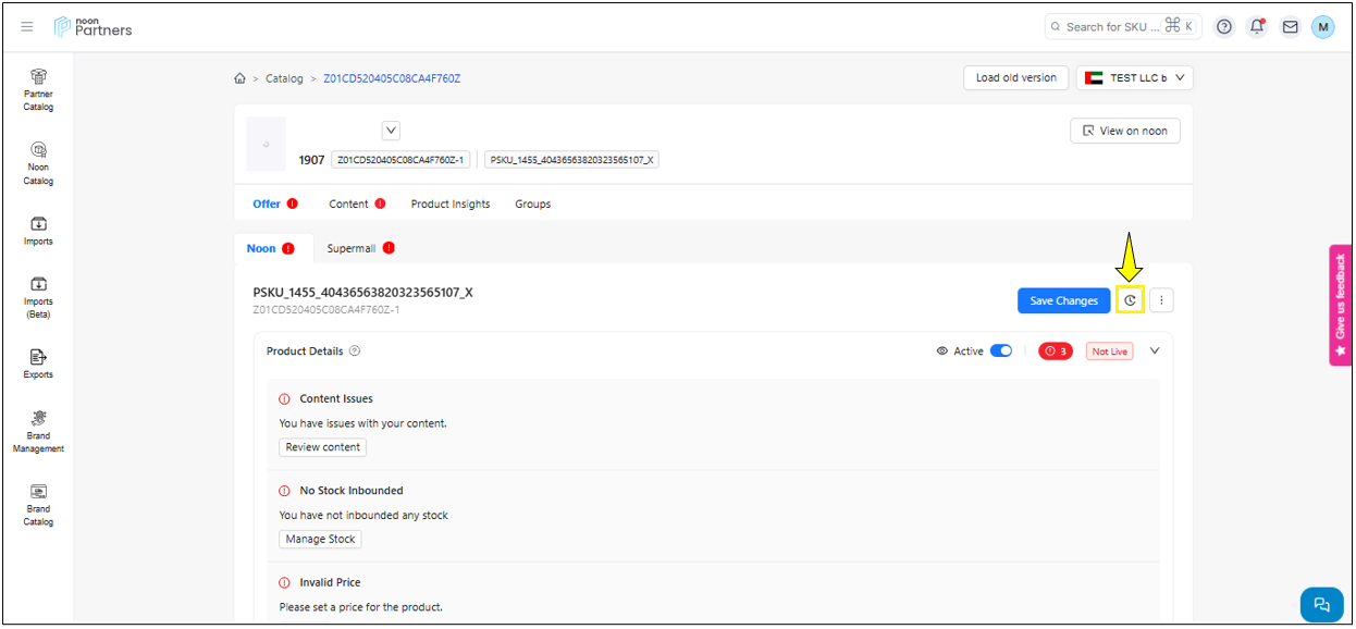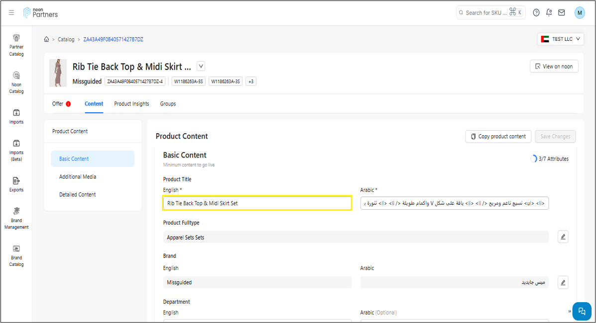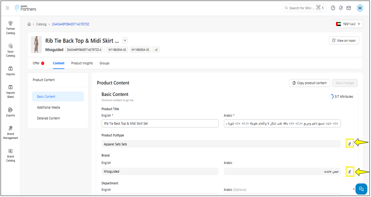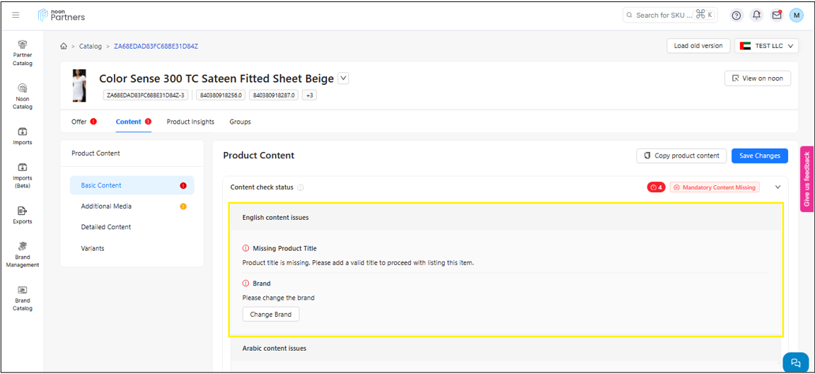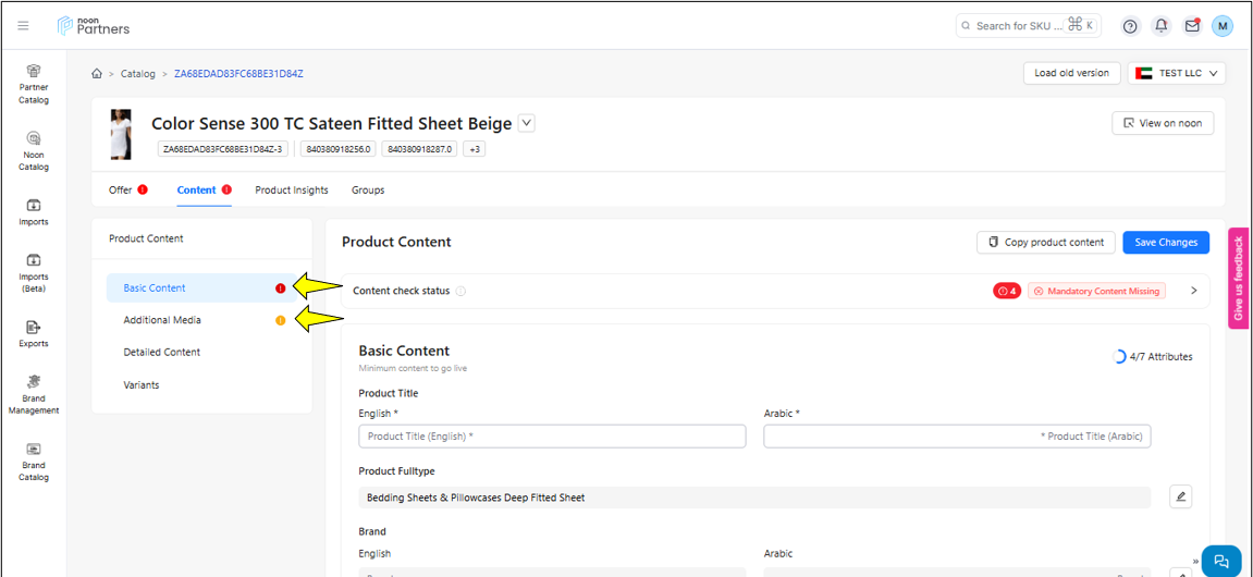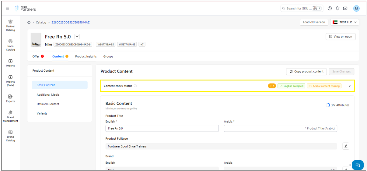 المحتوى: يتيح لك قسم المحتوى ليس فقط تحديث محتوى رمز المنتج (SKU) مثل الصور، مقاطع الفيديو، العنوان والمعلومات المهمة الأخرى، بل يزوّدك أيضًا بحالة المحتوى. وتشير هذه الحالة إلى نتيجة فحص الجودة الذي أجراه فريق المراجعة في نون.