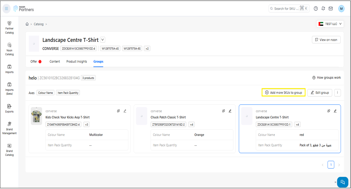 بإمكانك النقر على زر إضافة المزيد من وحدات SKU إلى المجموعة على صفحة المجموعة.