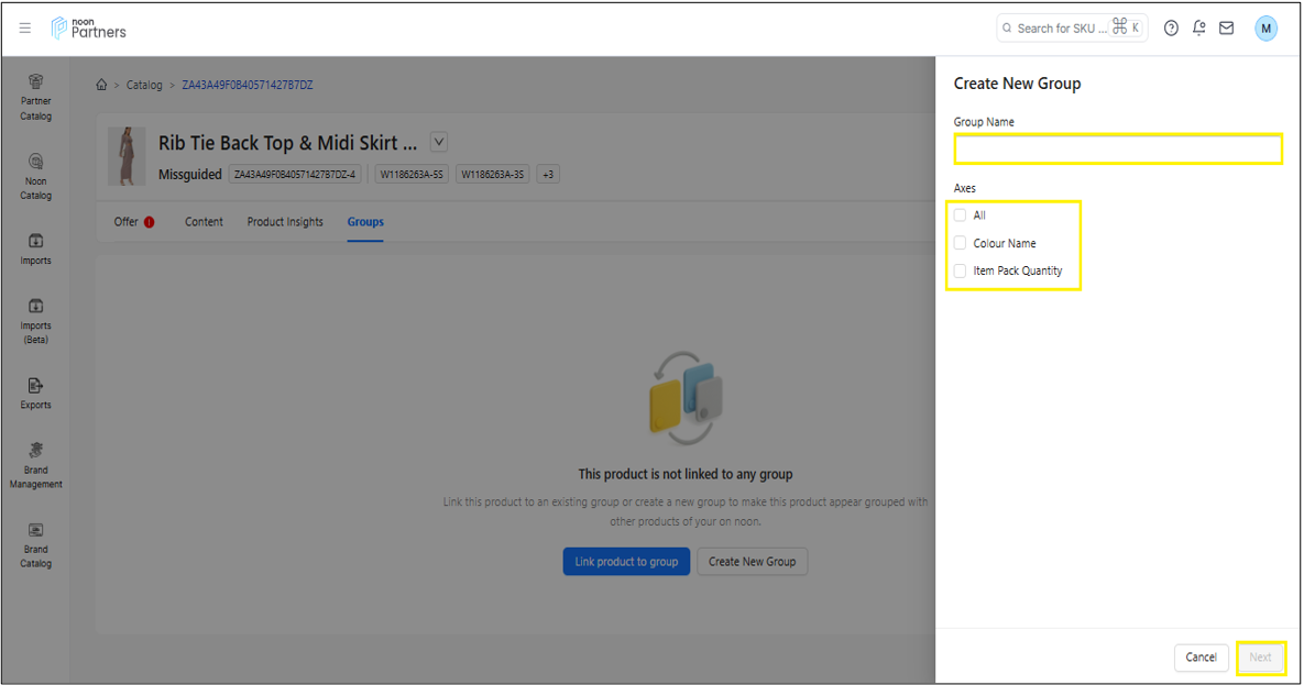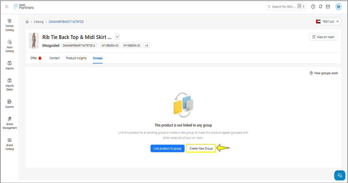 إذا كنت تريد ربط SKU بمجموعة جديدة، فيمكنك المتابعة بالنقر فوق إنشاء مجموعة جديدة.