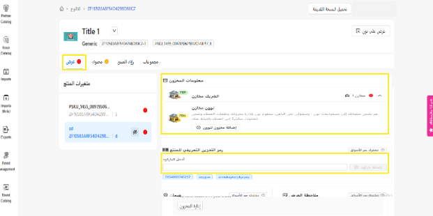 ملاحظة - يمكن للبائع ربط رموز التخزين التعريفية لنون NSKU الخاصة بالعلامات التجارية المقيدة فقط من خلال كتالوج نون. أما رموز التخزين التعريفية للشريك ZSKU والرموز الخاصة بالعلامات التجارية غير المقيدة، فيجب إدراجها من خلال إنشاء رمز تخزين تعريفي SKU فردي أو جماعي.