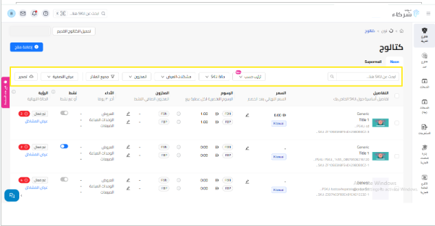 تم تصميم الكتالوج لمساعدتك في إدارة منتجاتك وبيعها في نون. يعمل الكتالوج أيضاً كقاعدة بيانات للمنتجات، مجهزه بالصور وأوصاف المنتجات لجميع المنتجات المعروضة على منصة نون. إنه هذه الأداة موجودة للمساعدة في جعل عرض منتجاتك وبيعها بشكل اسرع واسهل.
