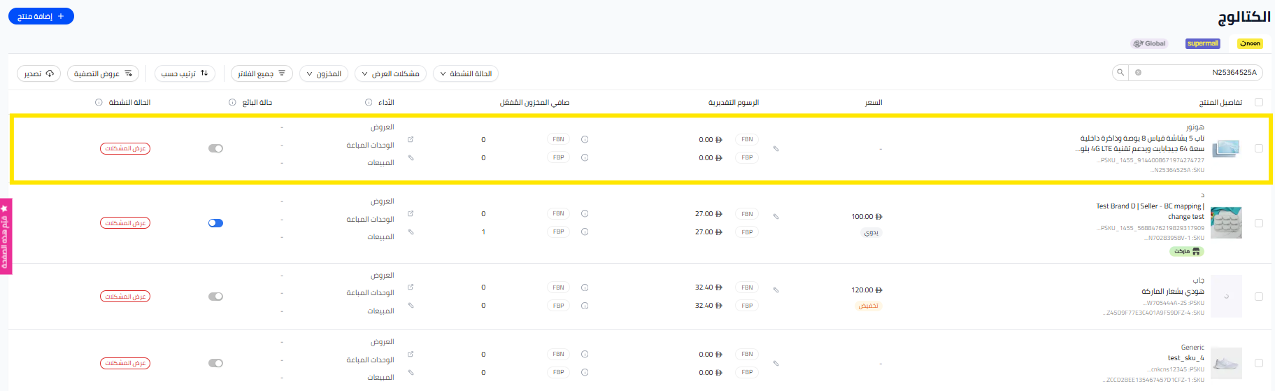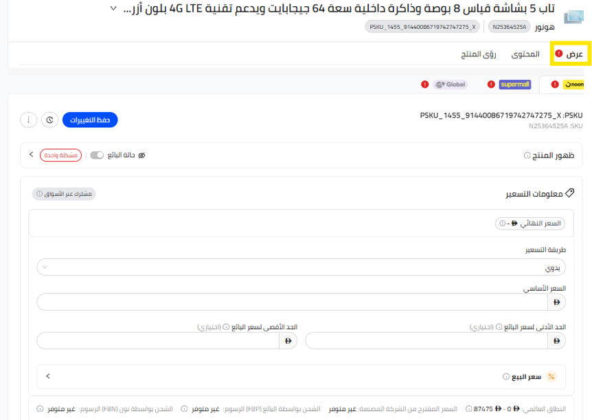 - اضغط على أي منتج لتعديل السعر، أو المخزون، أو الضمان، أو لإضافة عرض ترويجي. أي تغييرات تقوم بها على العرض ستظهر فورًا على موقع نون.