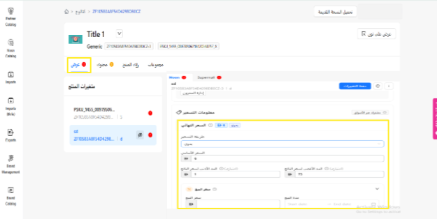- فعّل رمز التخزين التعريفي للمنتج SKU وقم بتحديث المعلومات الخاصة بالسعر، الكمية في المخزون، الباركود، و معلومات الضمان. بعد الانتهاء من التحديث، انقر على حفظ التغييرات لنشر المنتج مباشرة.