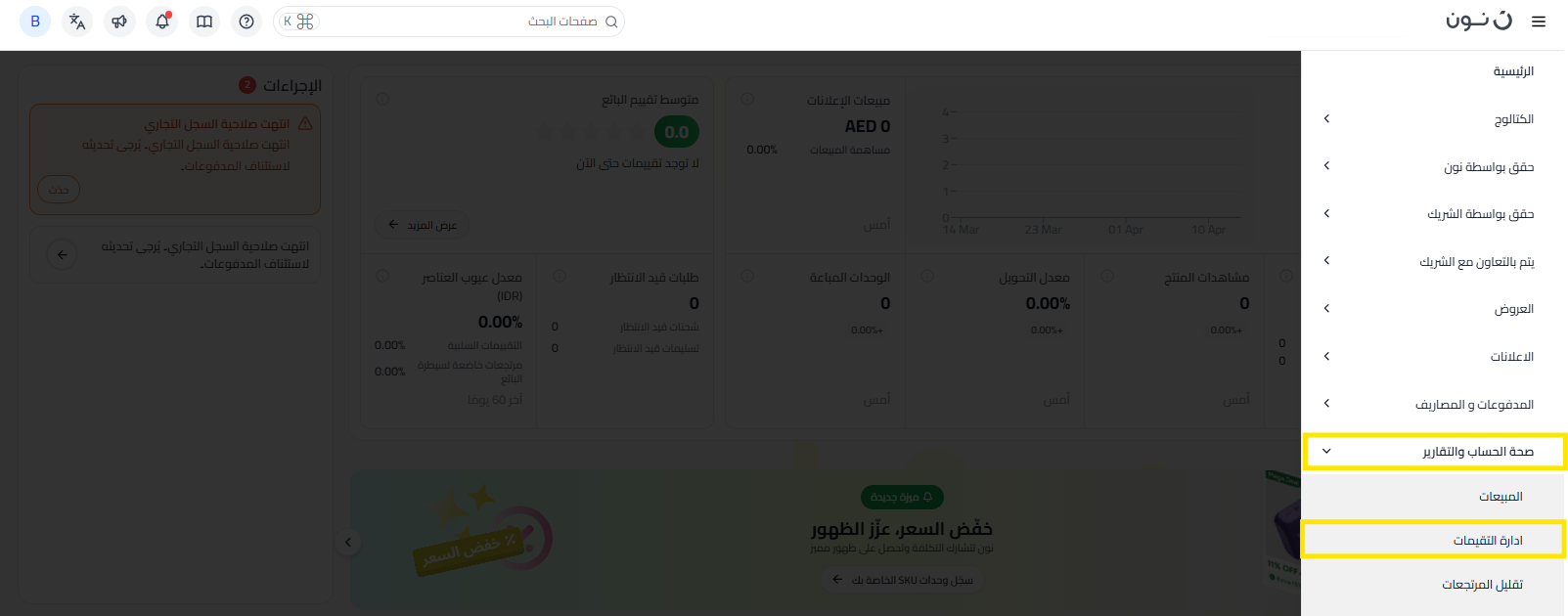 • تجنّب العقوبات مثل انخفاض ظهور العروض أو تعطيل المستودع.