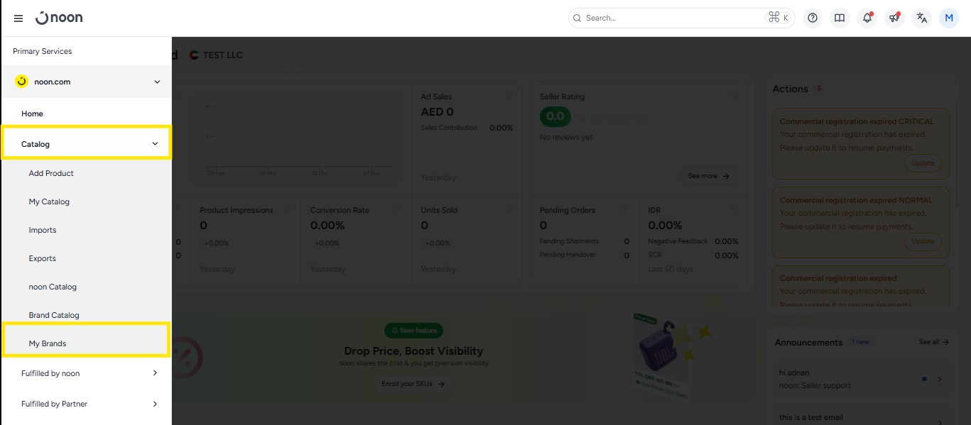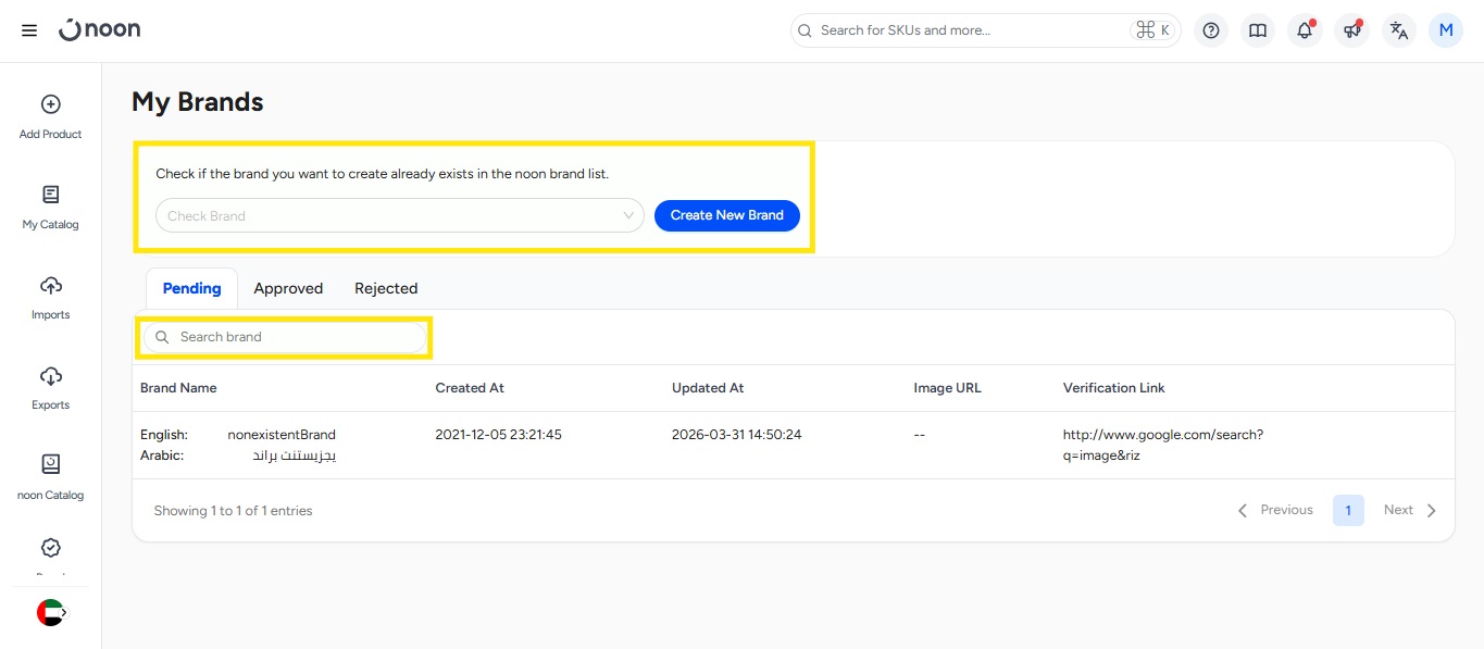 - You will find the brand request listed under the Rejected status in the Brand Management screen.