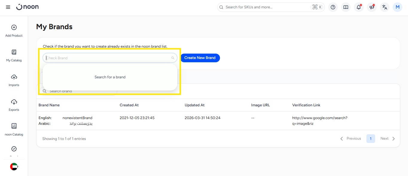 keyword you searched for. If the brand does not exist in the list of brands, you will be prompted to create a new brand.