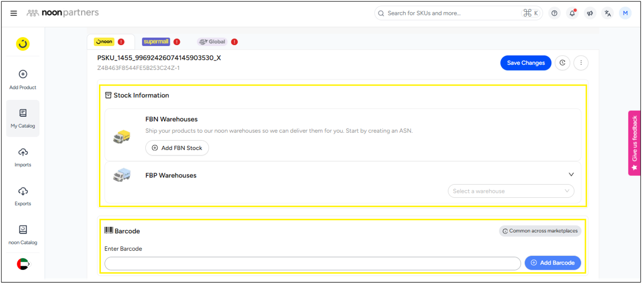 - If you further scroll down, you will find an option to update your Stock information or Barcode details. If you chose FBN as the selling model you need to create the ASN for the stock transfer and if you wish for FBP as your selling model, you need to update your stock in this section.