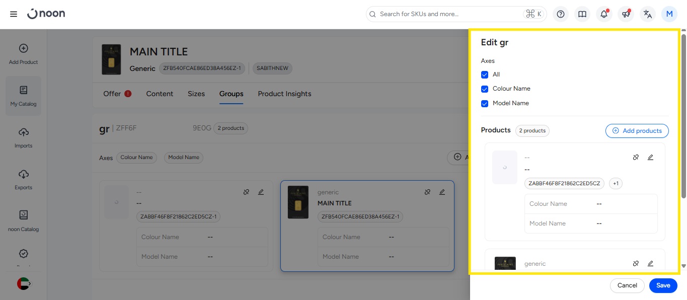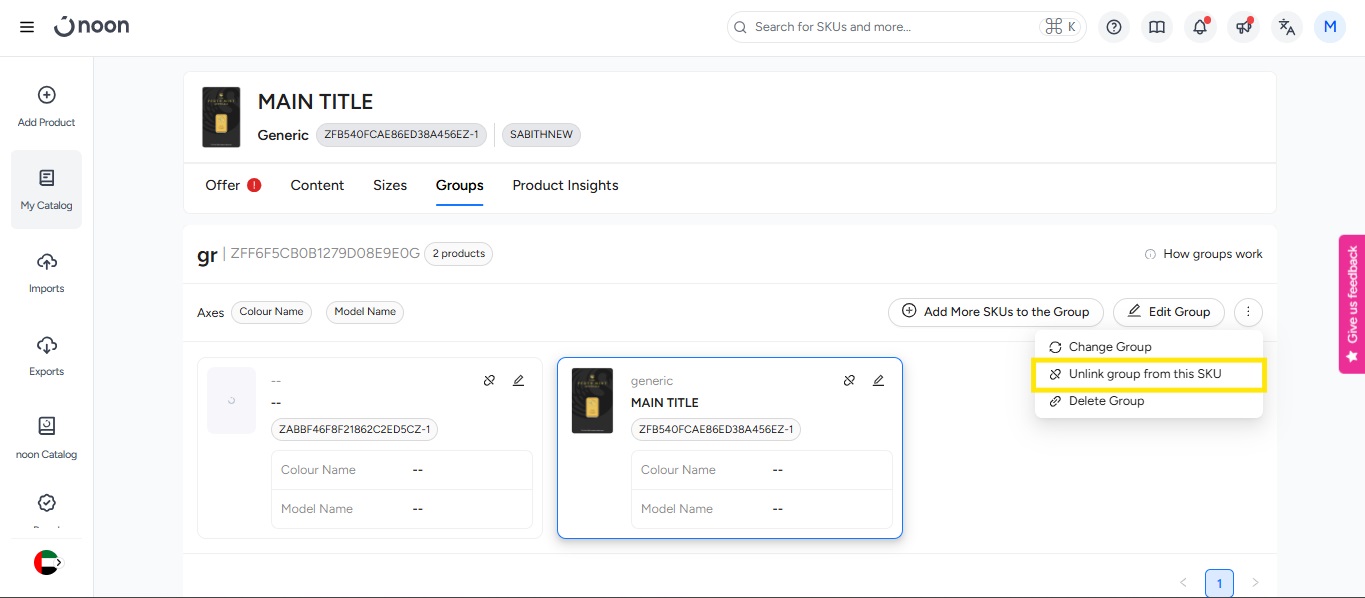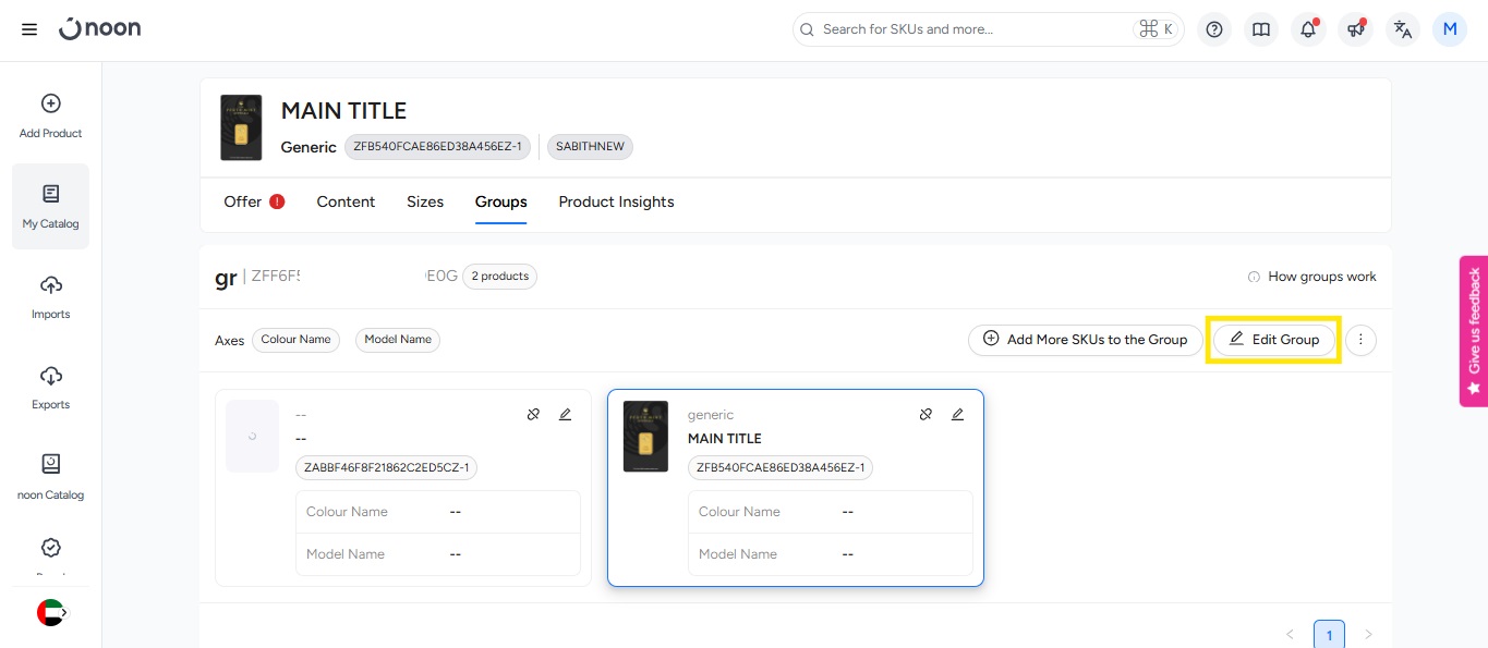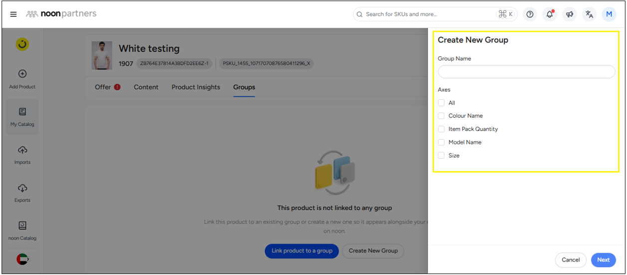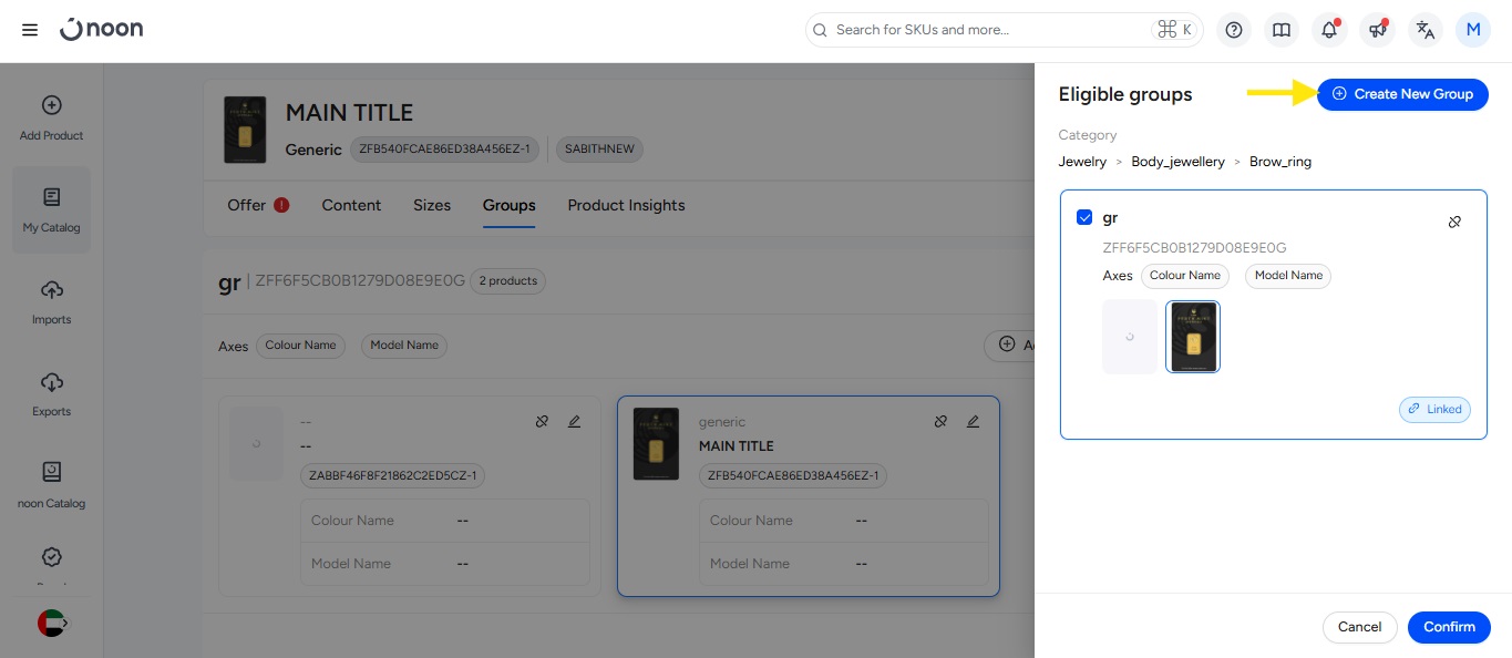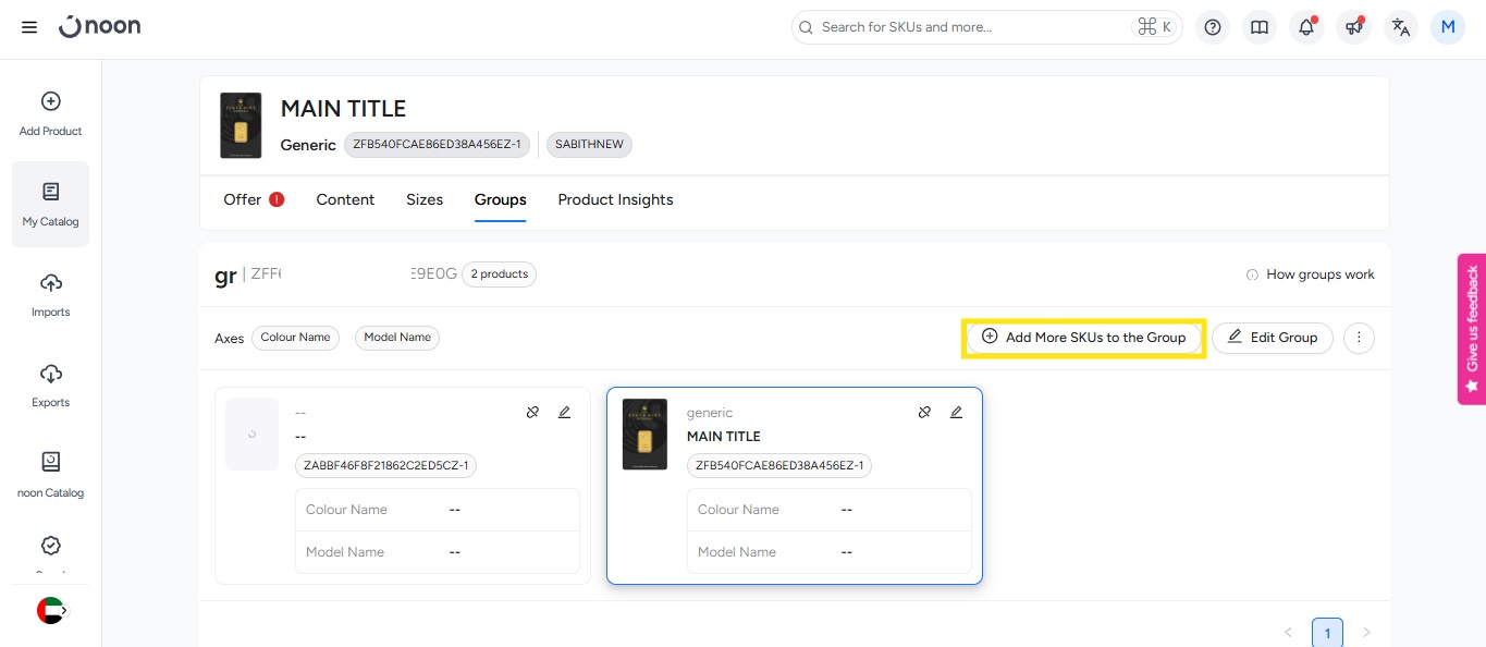 Groups: This section allows you to group different Parent SKUs belonging to the same category into a single group having one variable attribute, i.e., color.