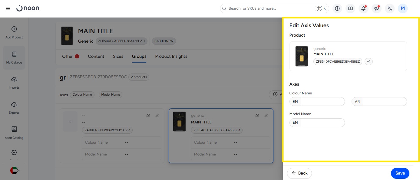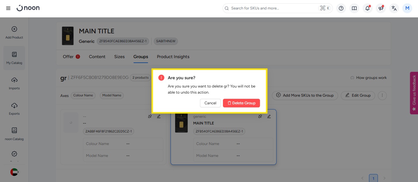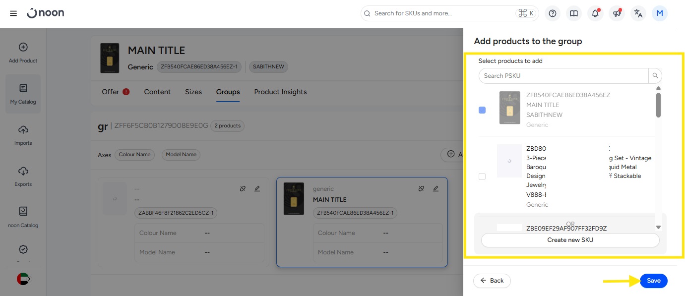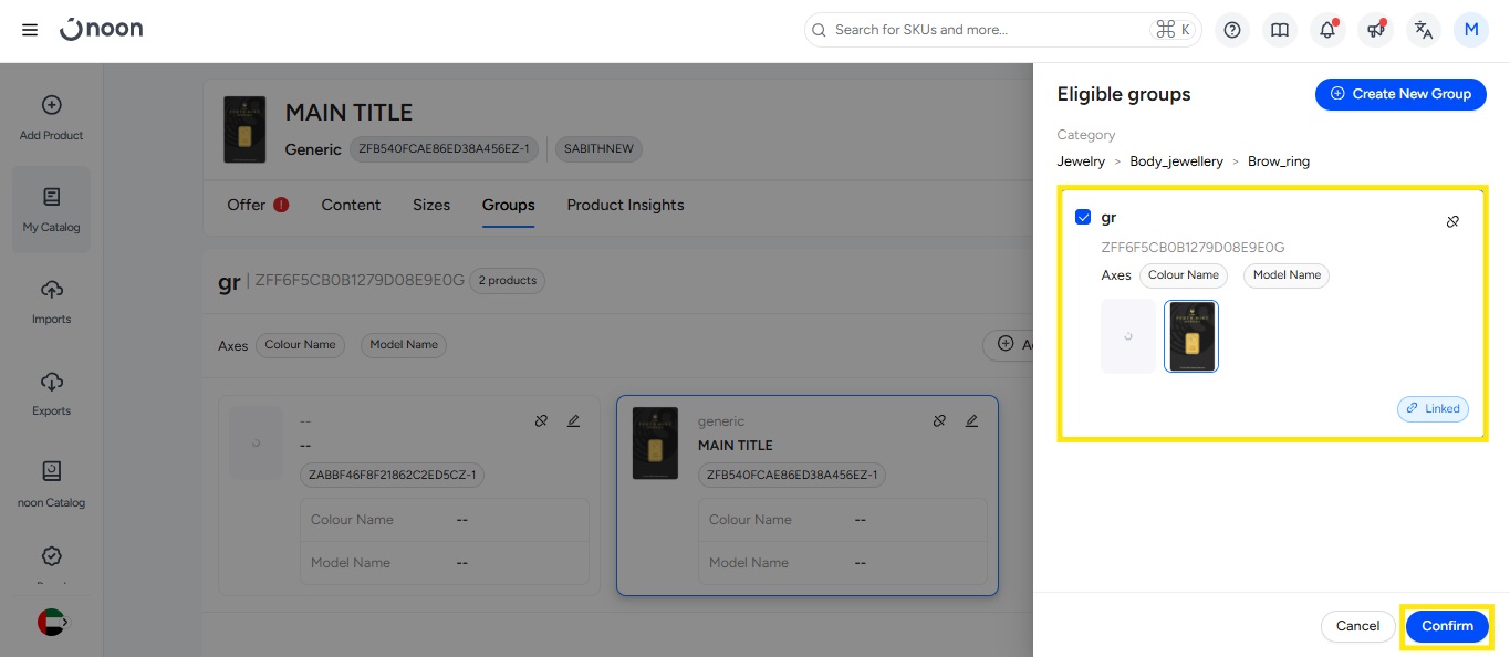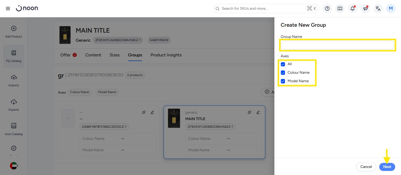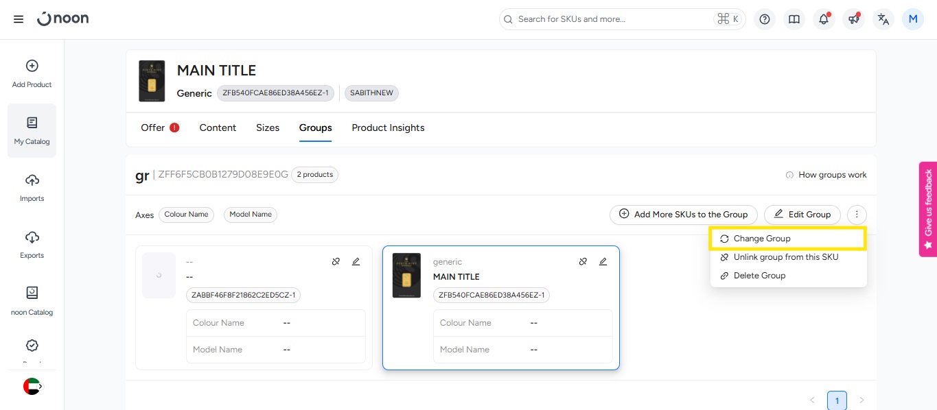 Groups: This section allows you to group different Parent SKUs belonging to the same category into a single group having one variable attribute, i.e., color.