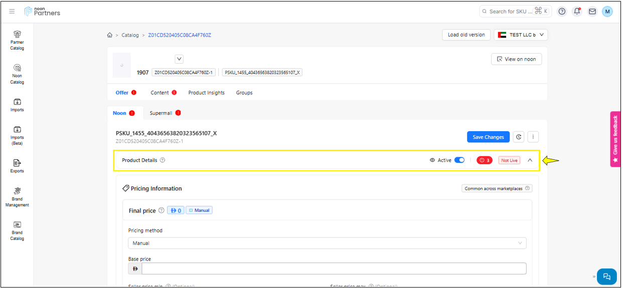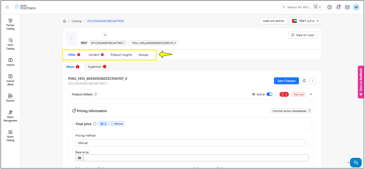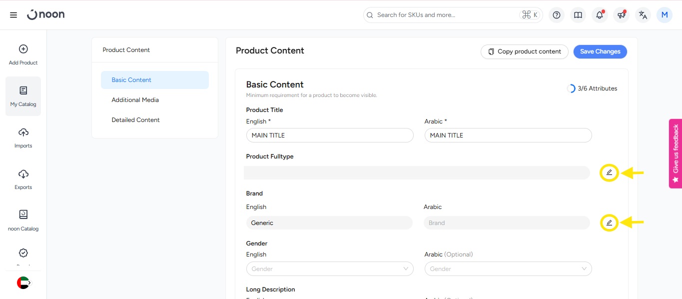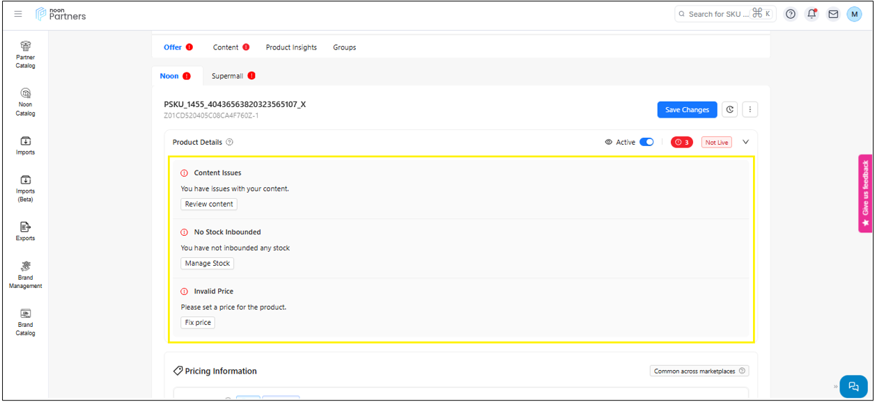 Content: The content section not only allows you to update the content for the SKU, such as images, videos, title, and other important information but also provides you with the status of the content. This status indicates the Quality check result of the content done by the noon review team.