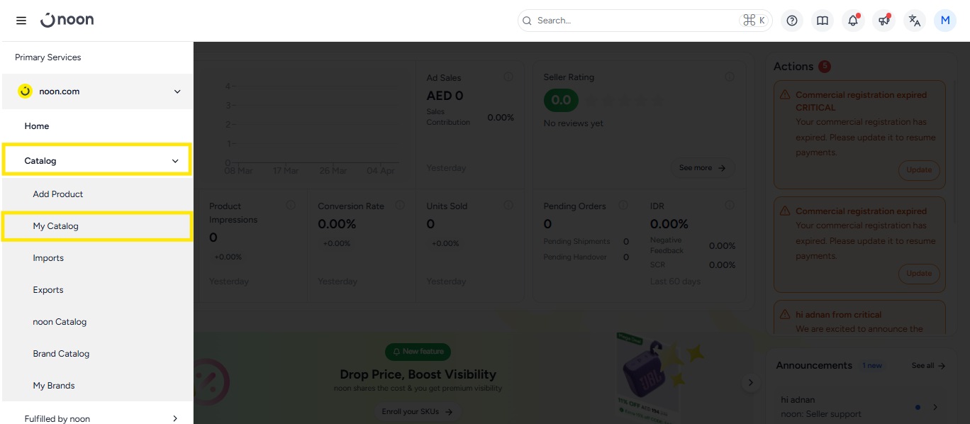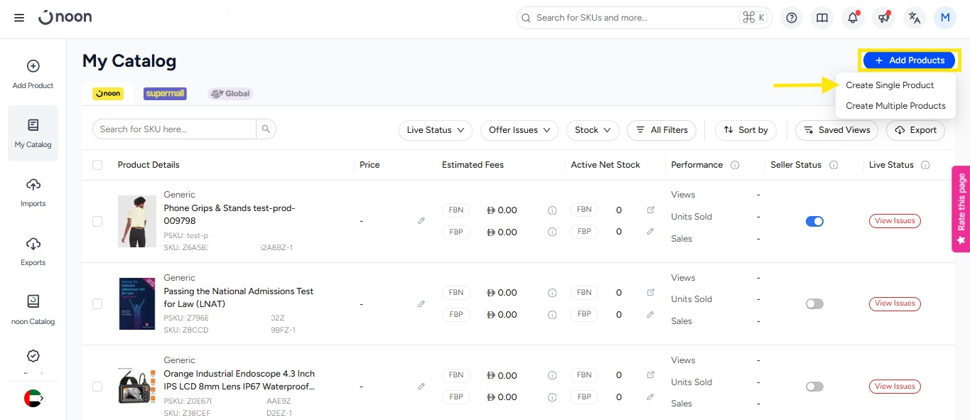 - Navigate from Seller Lab - noon.com (Seller Lab >