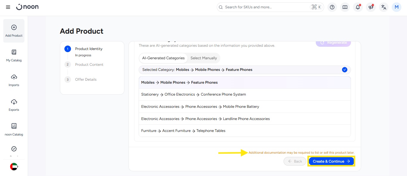 - You can proceed to create your content by clicking create and continue option during the SKU creation steps.