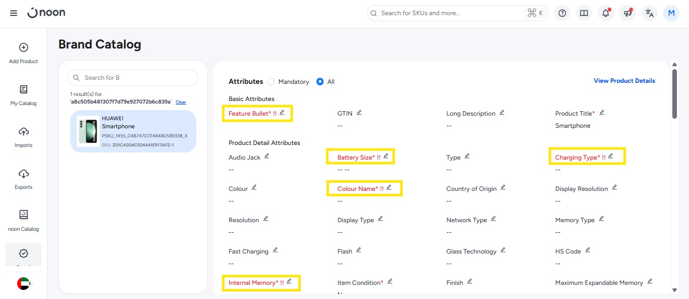 - In the next step, you are requested to fill in all the mandatory fields, which are in red, to complete the content to be submitted to noon content team to create a new noon SKU.