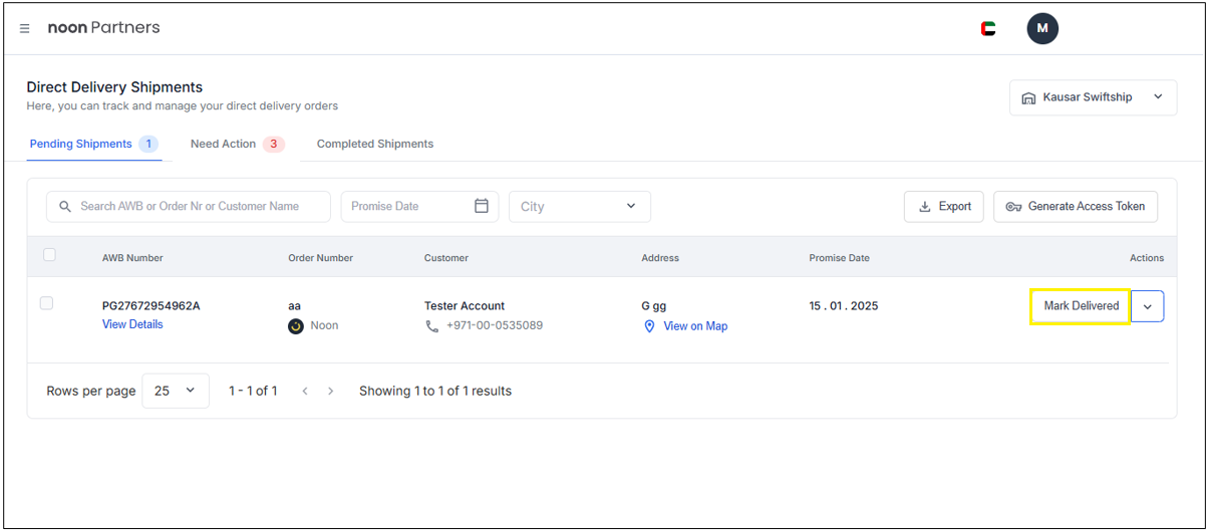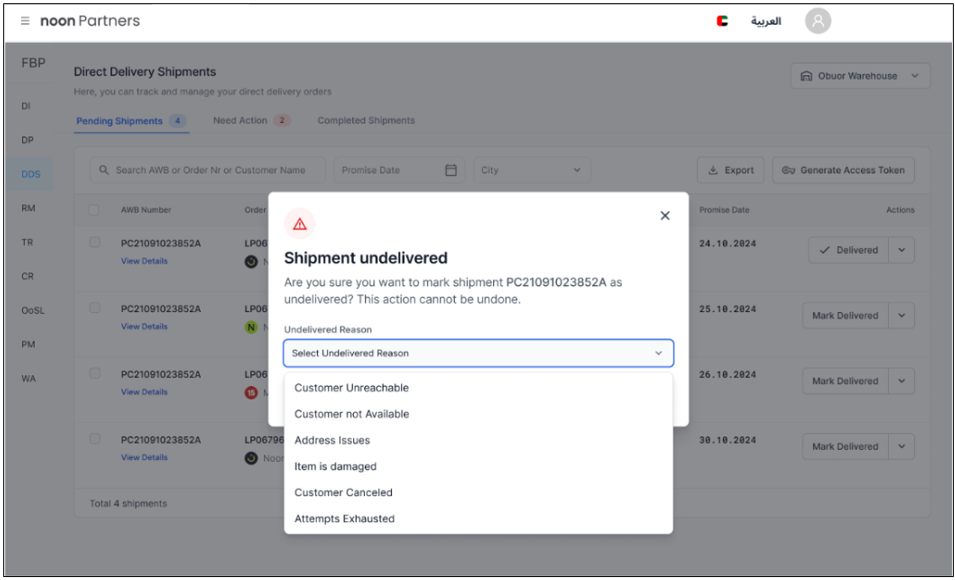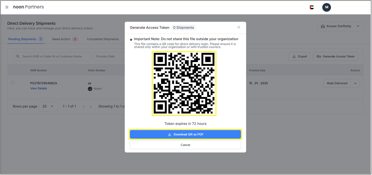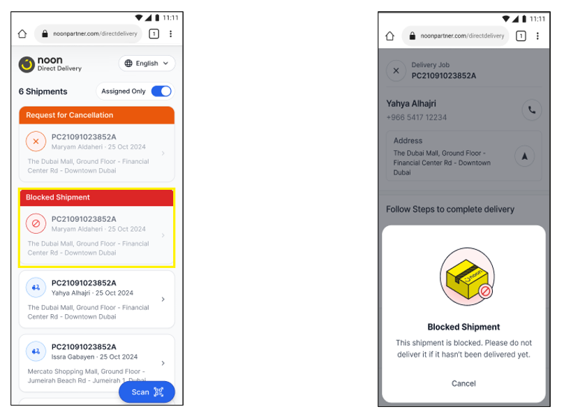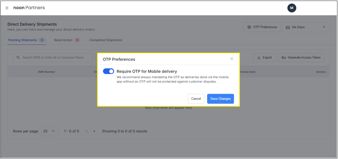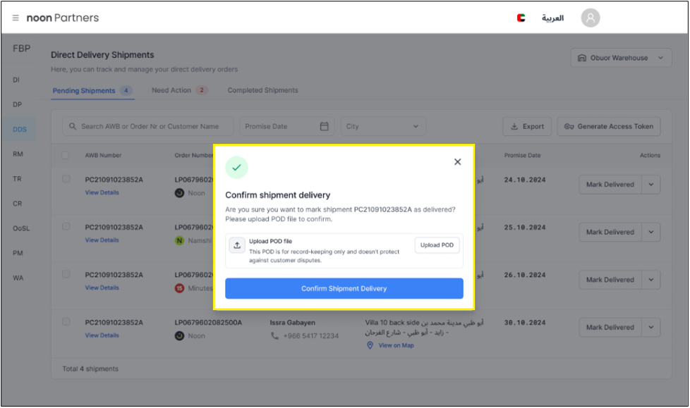 - The driver can still disable the toggle at any time to view all pending shipments assigned to this warehouse. However, we strongly discourage disabling the toggle unless necessary, as it might lead to confusion.
