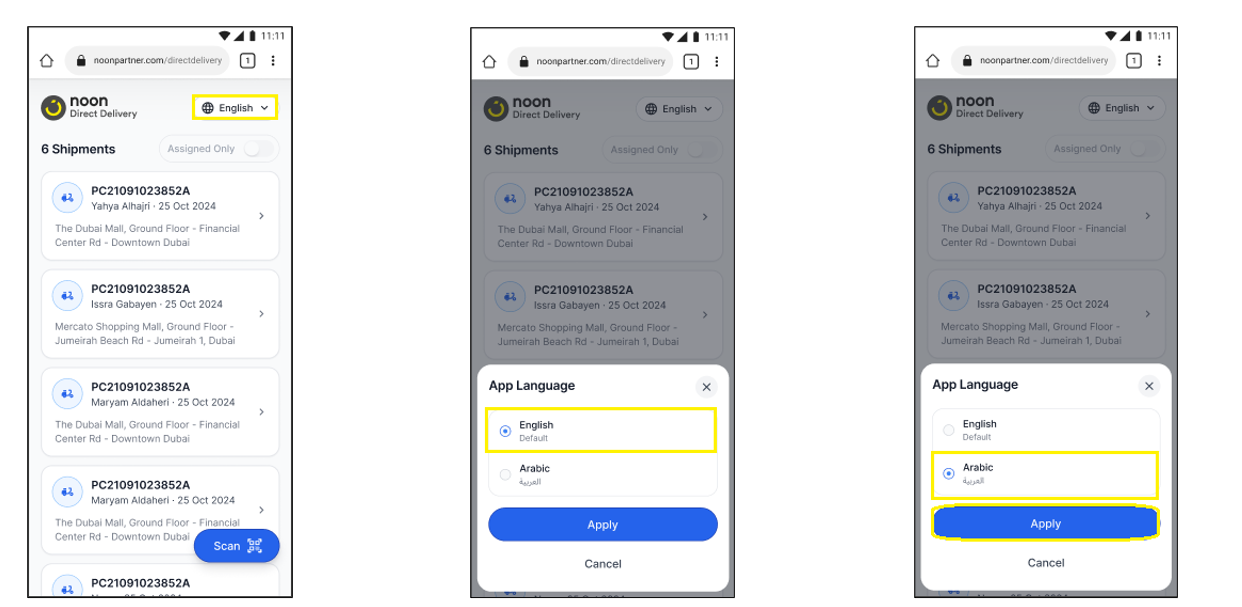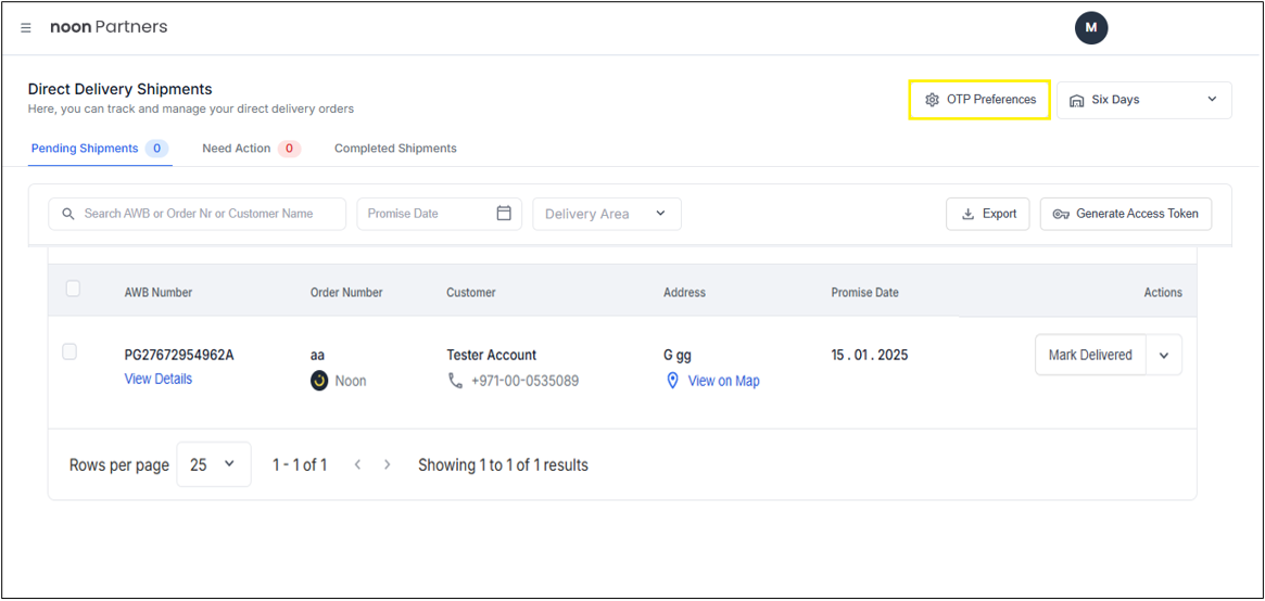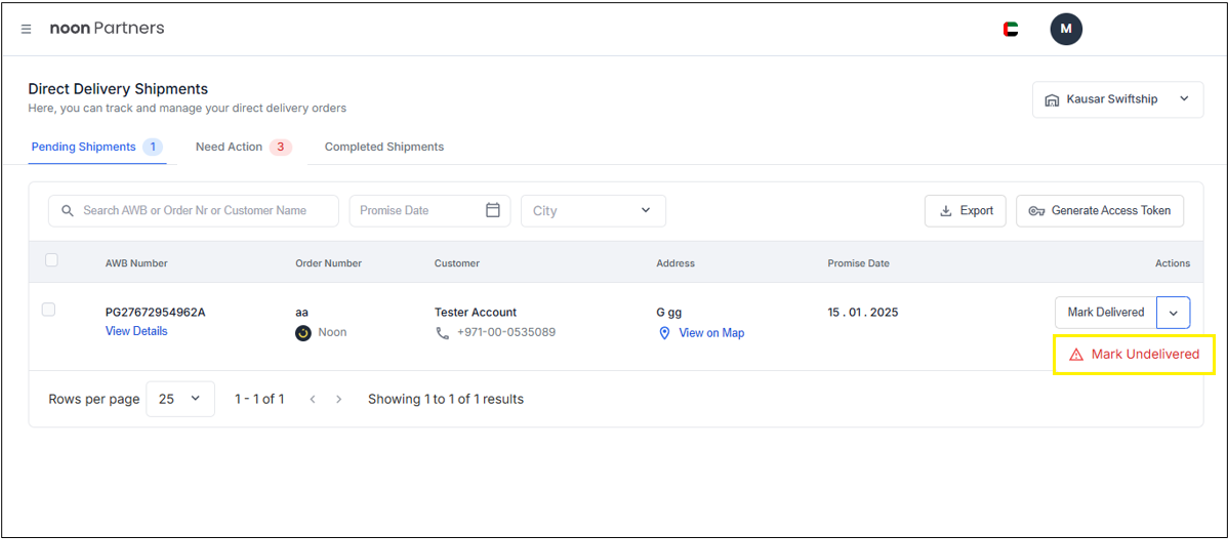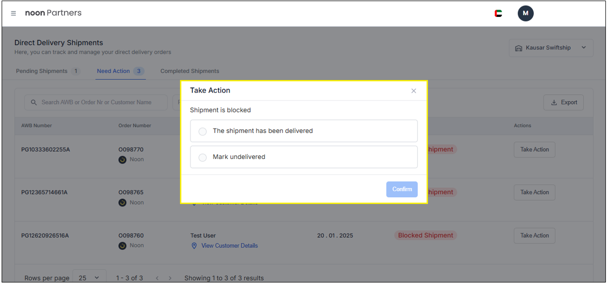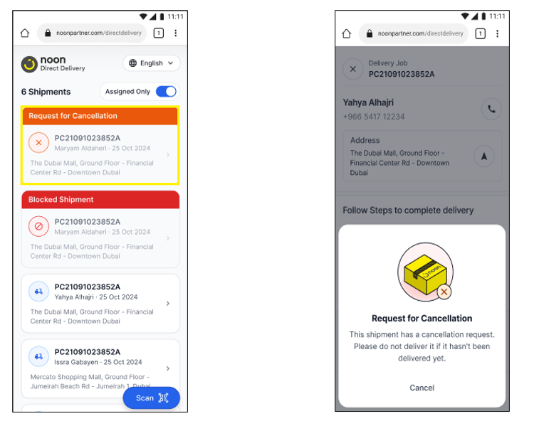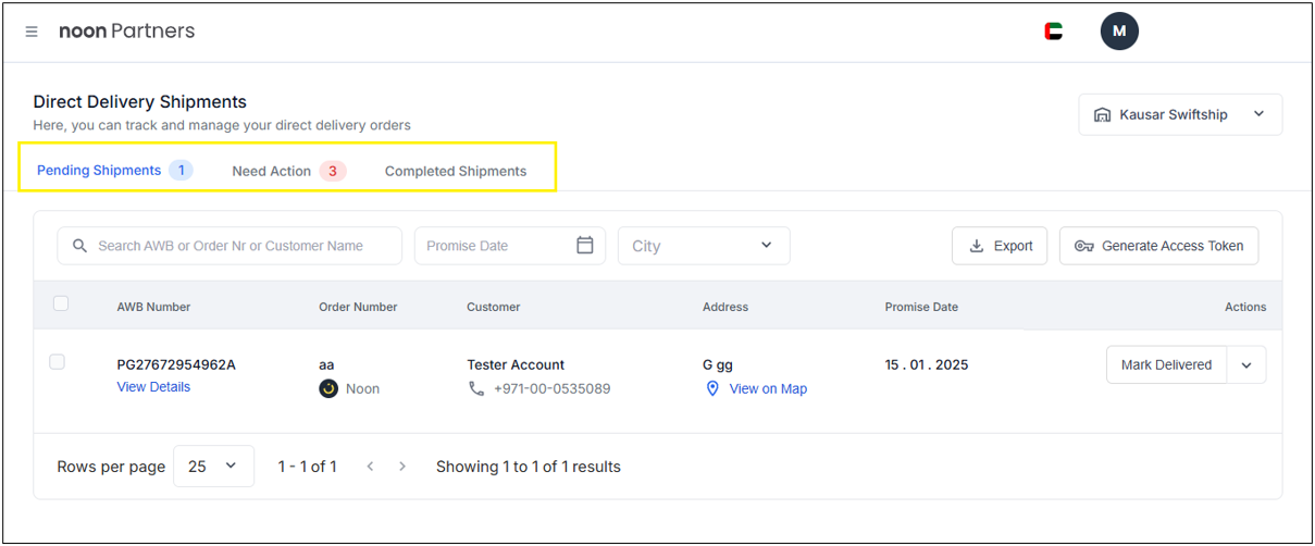 - The driver can still disable the toggle at any time to view all pending shipments assigned to this warehouse. However, we strongly discourage disabling the toggle unless necessary, as it might lead to confusion.