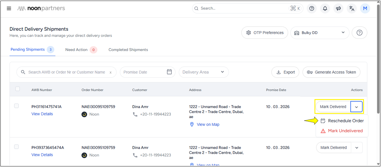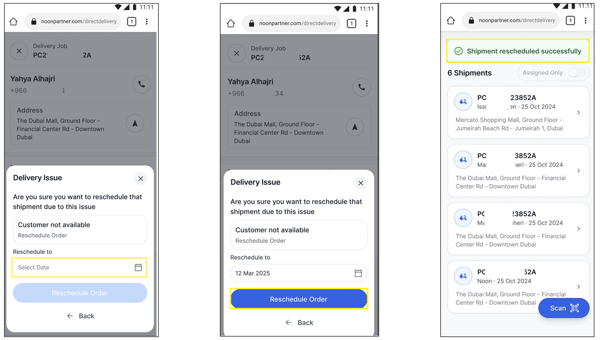 3. When a shipment is rescheduled, the customer is notified for confirmation. noon closely monitors your deliveries to avoid misuse of this feature.