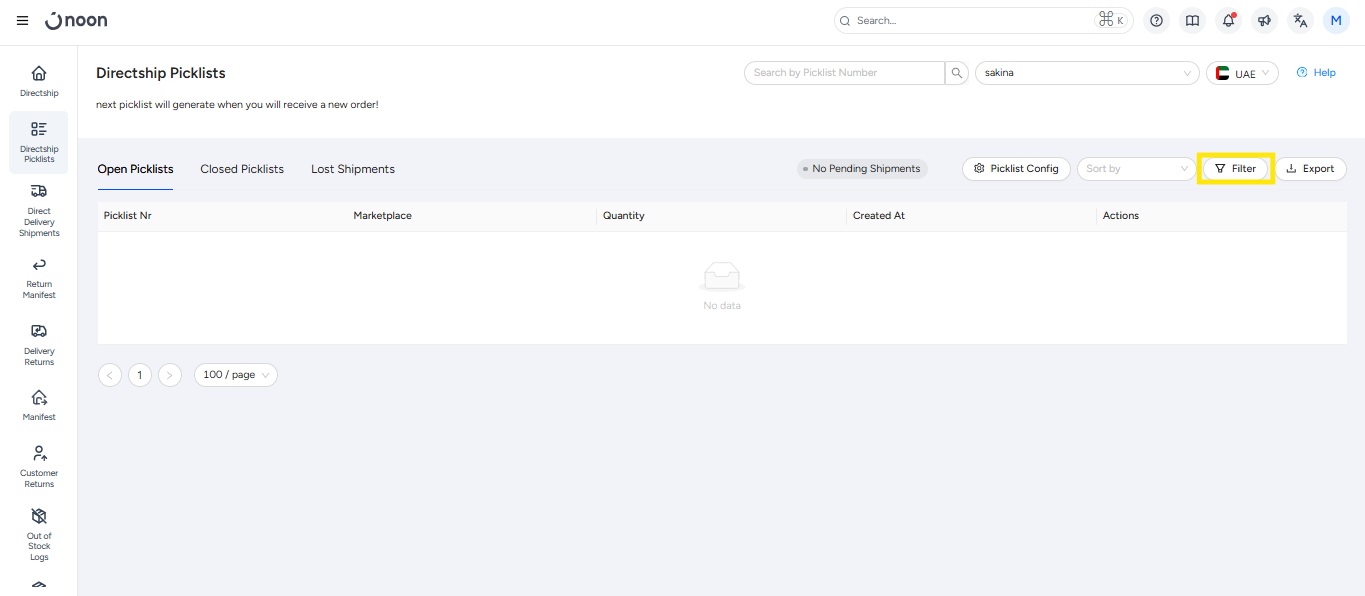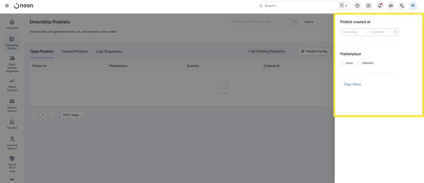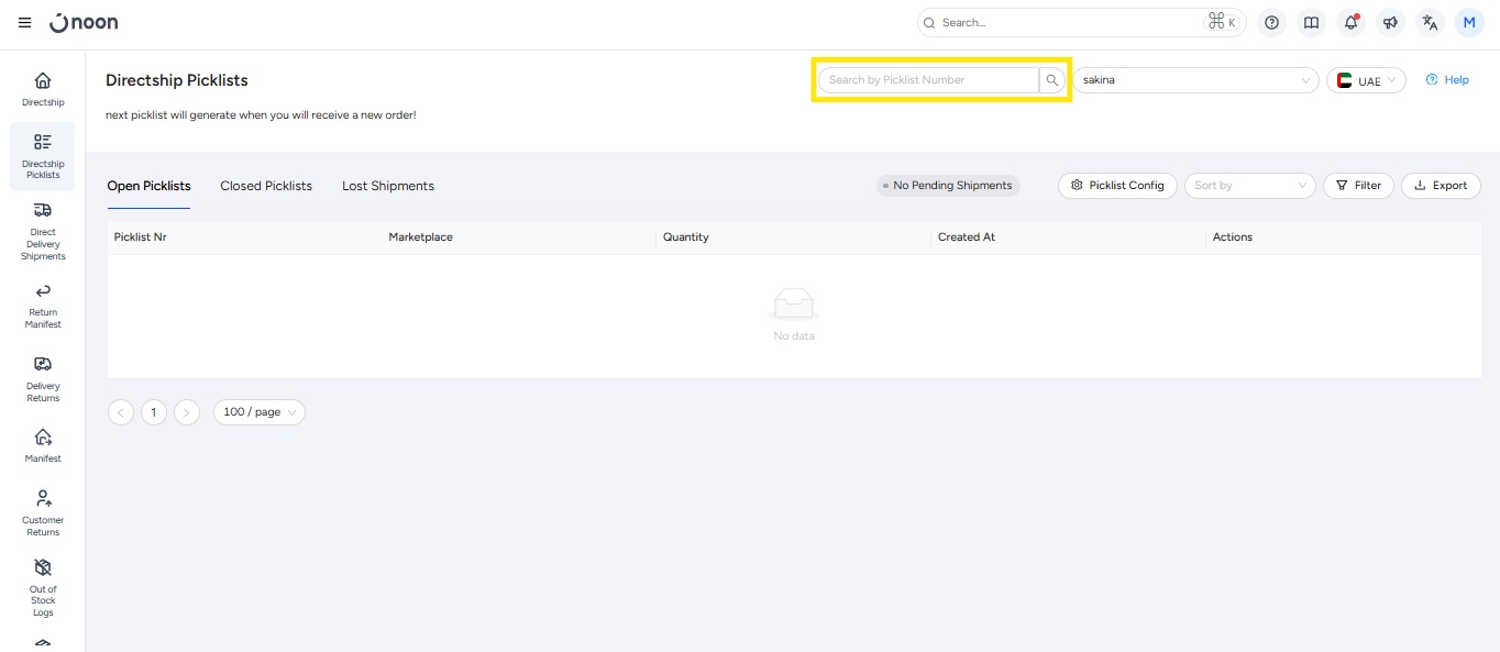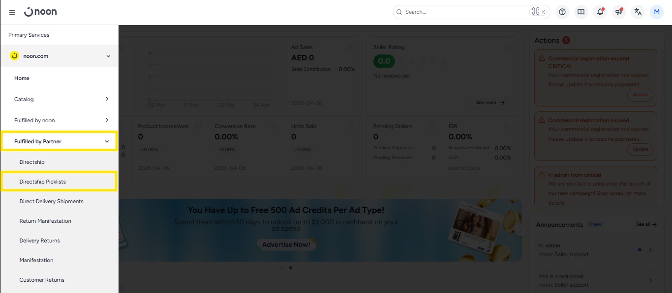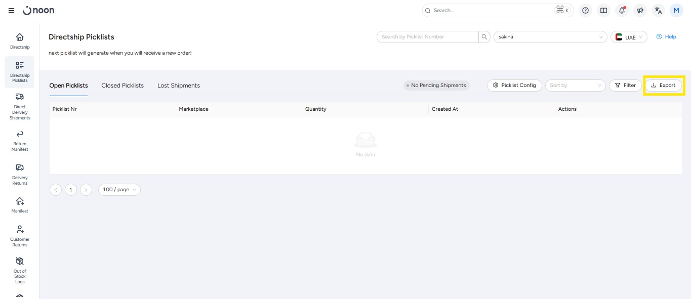 Click on the ‘Fulfilled by partner’ tab in the Seller Lab and then click on ‘DirectShip picklist’.