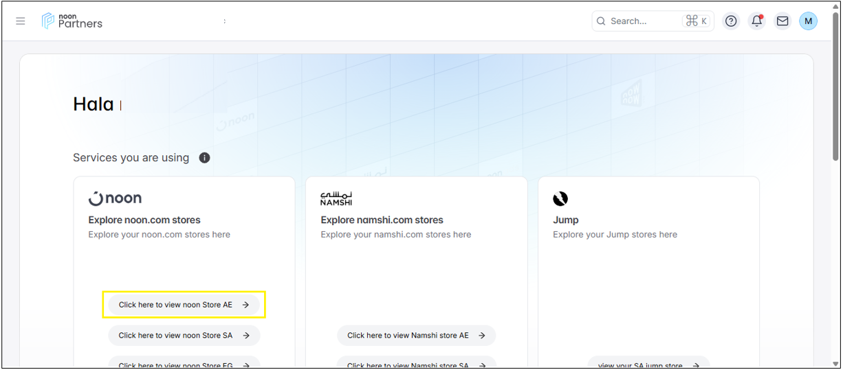 - Select Your Store: Identify and select the specific store for which you want to make changes as shown in the screenshot below: