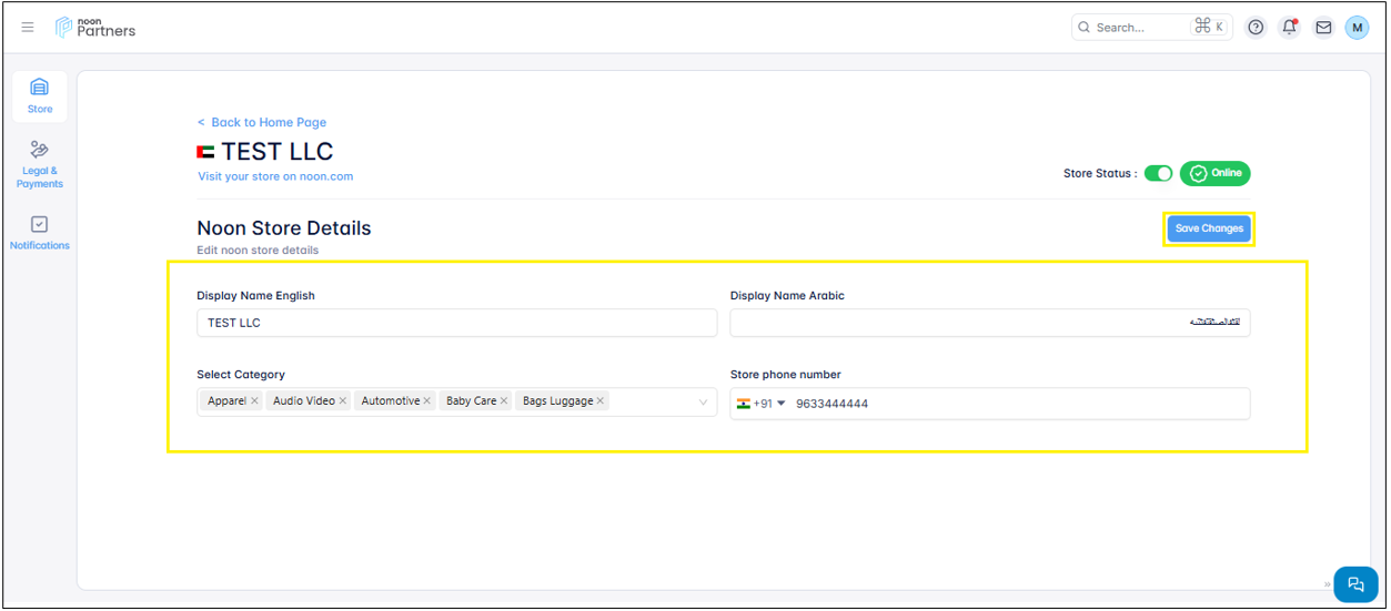 - Edit Your Store Details: Upon selecting 'Edit store details,' you will gain access to view your current store information. Click on the 'Edit' button to initiate changes. Make the necessary adjustments, then click Save Changes to confirm your updates.