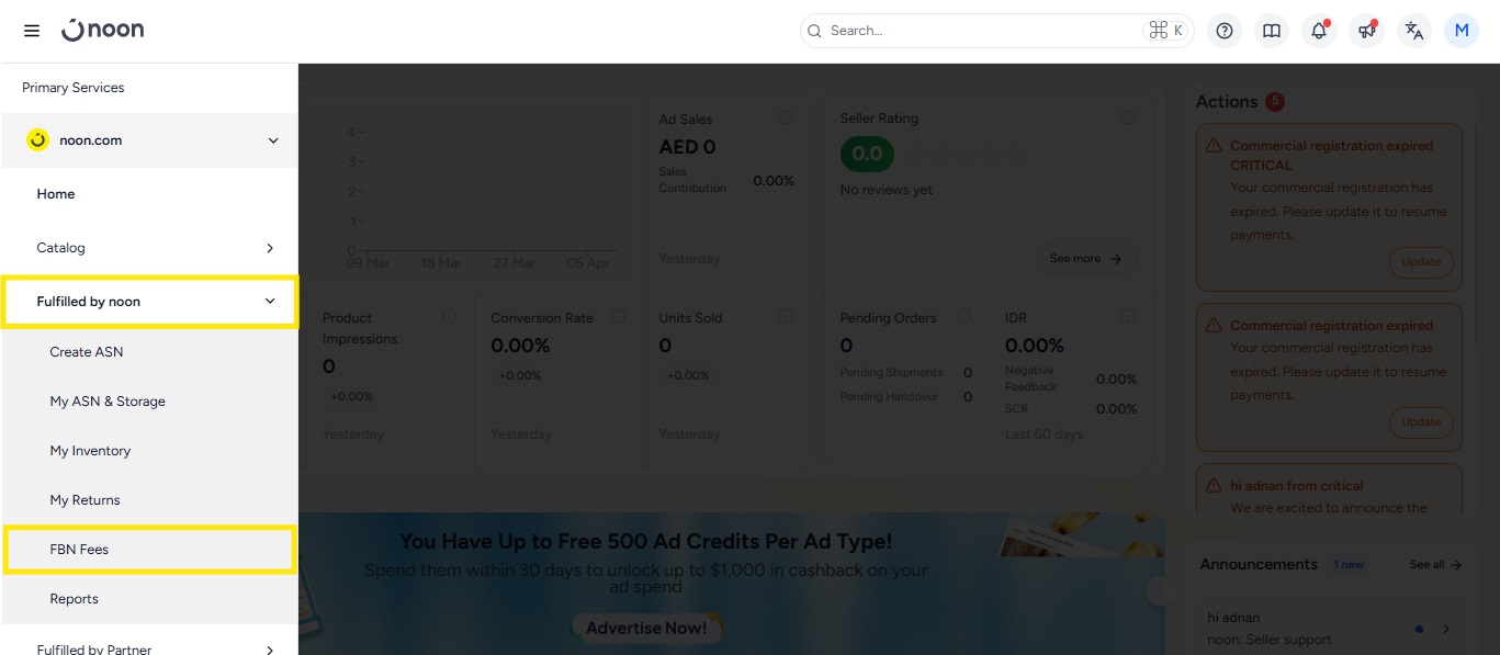 Outbound Fees: Charged for every unit shipped from Noon’s fulfillment
