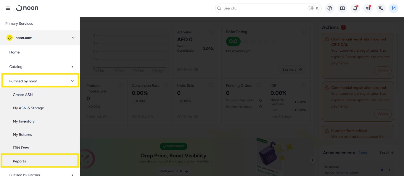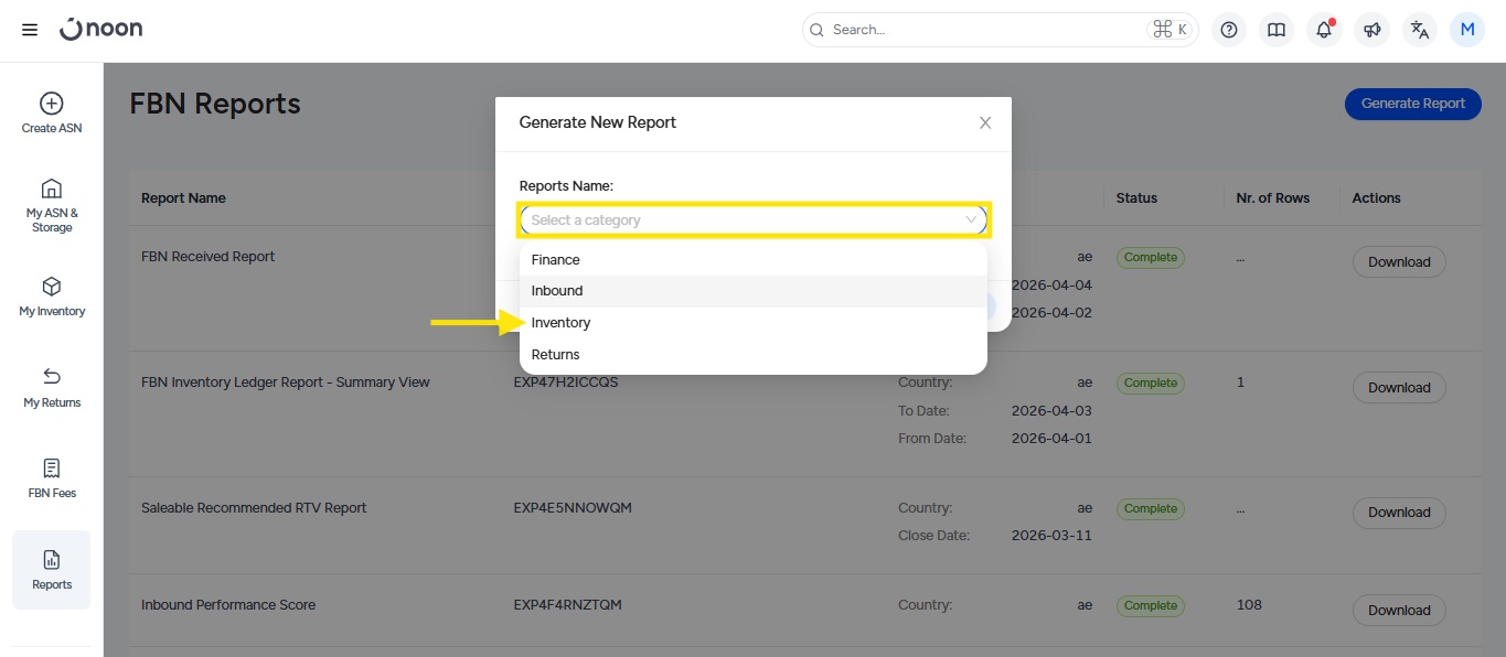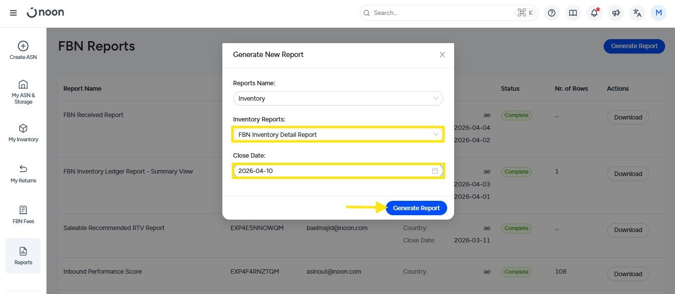 From the Inventory Reports tab, select FBN Inventory Detail Report