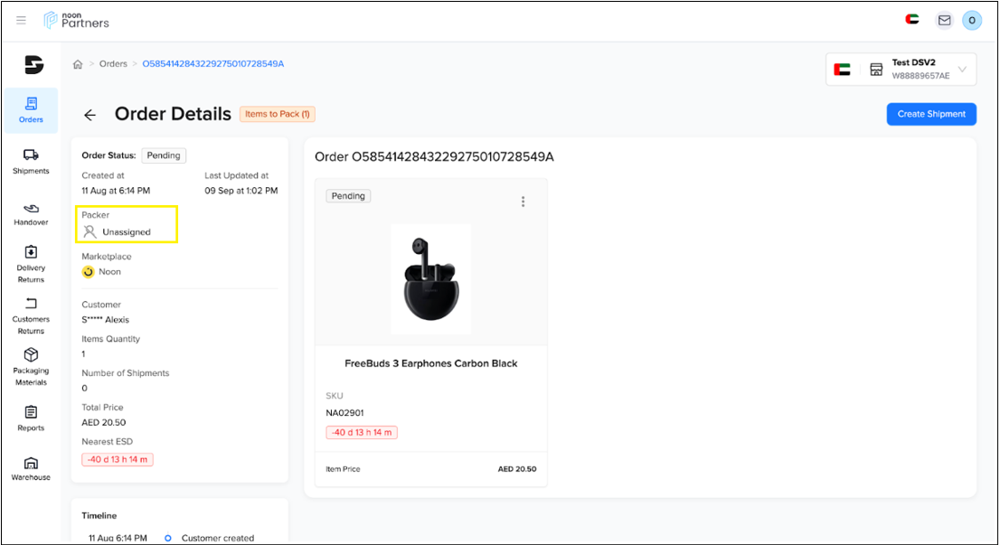 - In the Multi-packer mode, you can process the pending orders that are not yet assigned. You can click on create shipment in the pending orders to view the order details and check if the order is assigned or not.