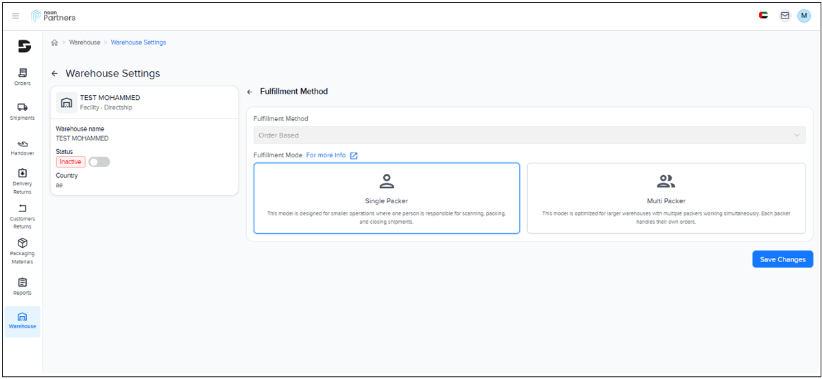 Packing the orders to create the shipment for handover is a very crucial part of the Directship process. Depending on your warehouse size, you might have a small warehouse with only one or two packers, or you might have a large warehouse with a team of packers. The warehouse setting will now allow you to select your preferred fulfillment mode. In this article, we will discuss each of these fulfillment mode as given below.