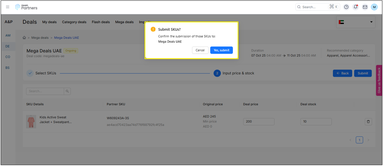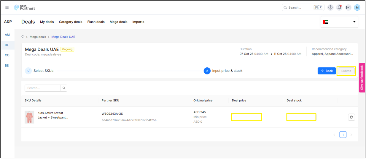 - Add your discounted price in Deal Price and your stock quantity in Deal Stock, then click Submit.