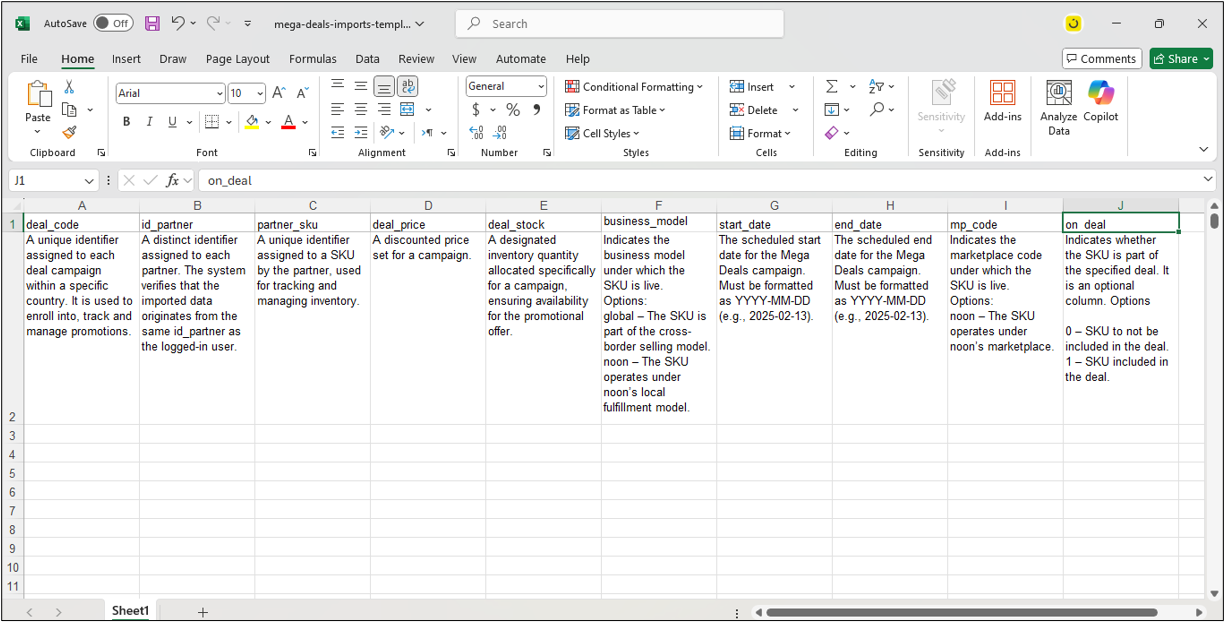 on_deal | Indicates whether the SKU is part of the specified deal. It is an optional column. |