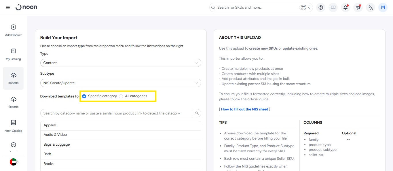 Start by downloading the template for the bulk listing of products under multiple categories.