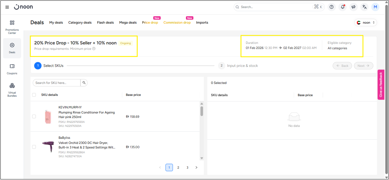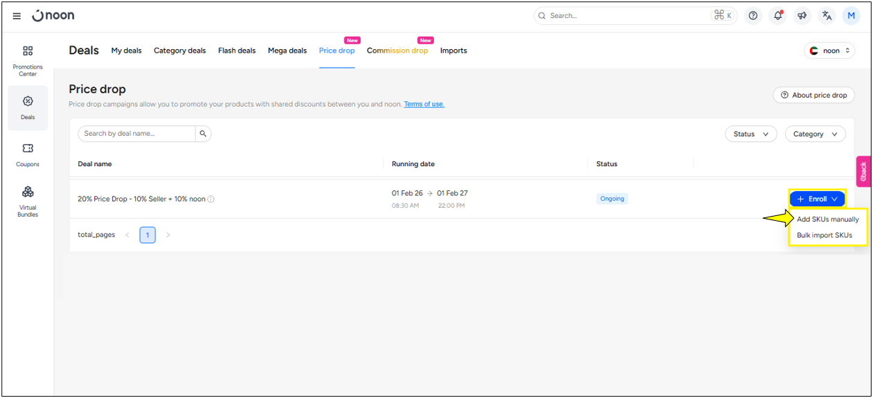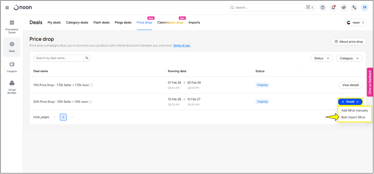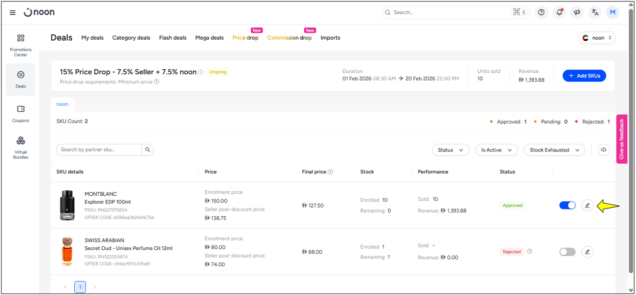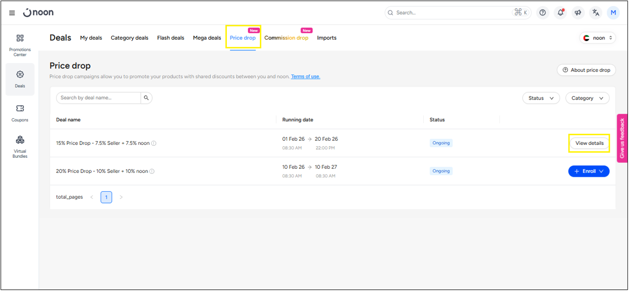 In addition to the above-mentioned actions, there are some additional functionalities that you can take on the Price drop deals.