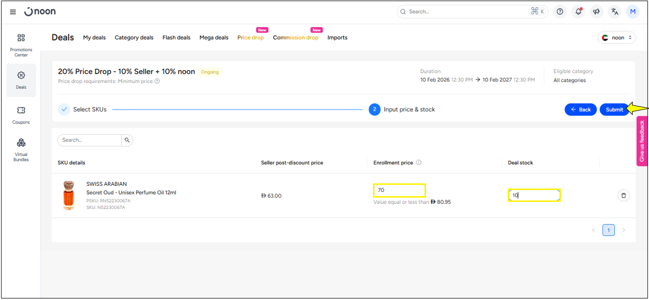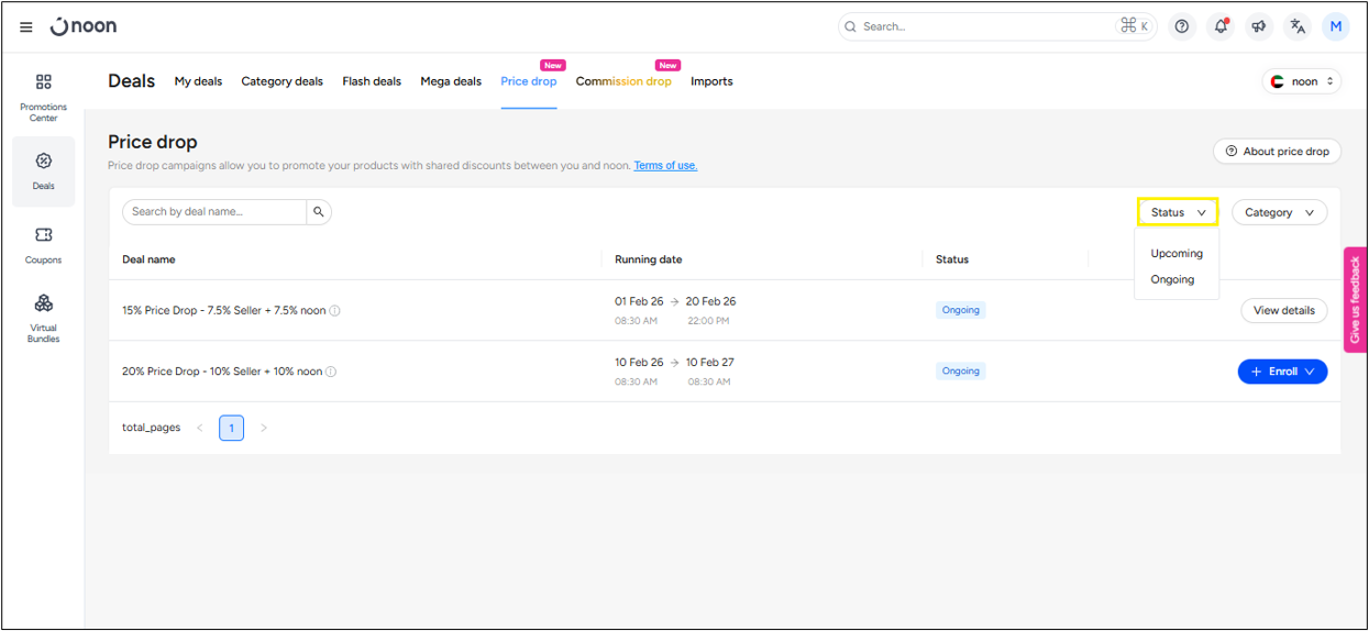 You can filter the deals based on their timeline. Easily switch between Upcoming deals to prepare your inventory or Ongoing deals to monitor active performance.
