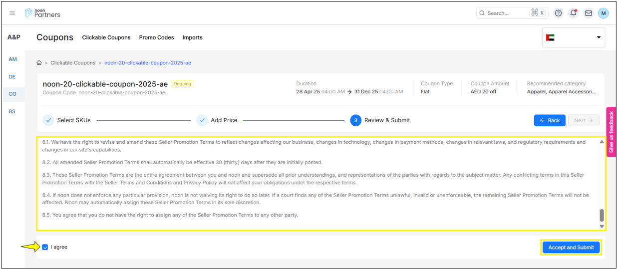 - You will need to review the Terms and Conditions and then acknowledge it by checking the I agree option. Then click on Accept and Submit to proceed.