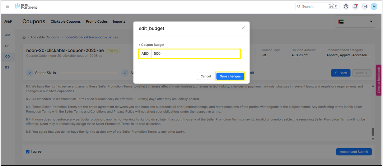 - A pop-up appears on the screen, where you need to provide the budget for the campaign. Enter the budget and click on Save Changes.