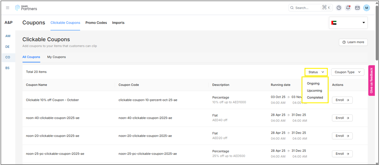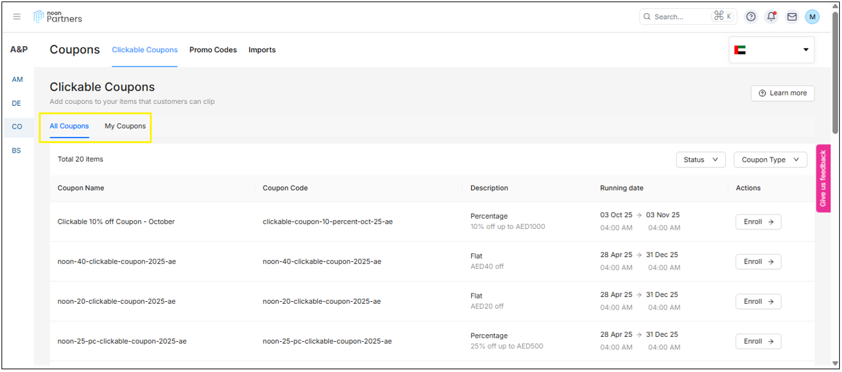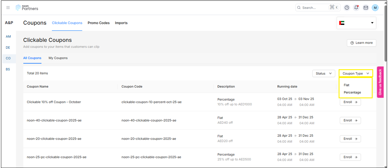 - All coupons: This includes all the coupons that are running on the noon platform.
