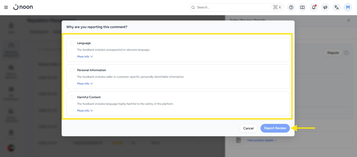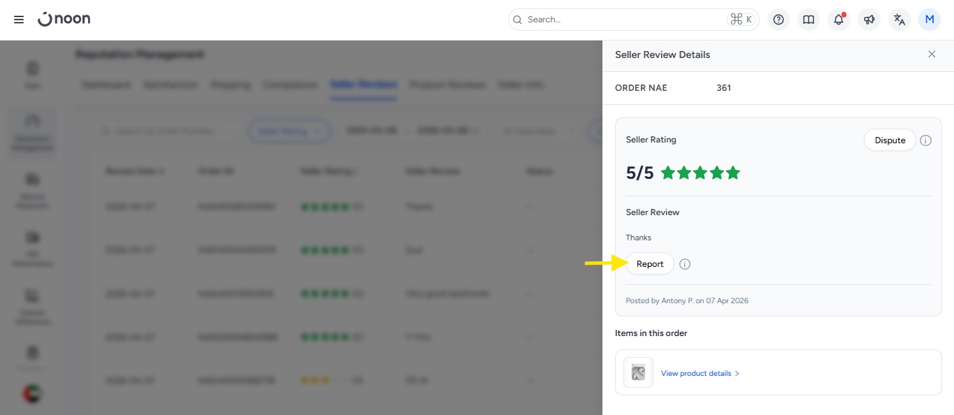 All seller reviews posted by the customers must follow noon’s Community Guidelines and Seller Review Guidelines. Any content that goes against these guidelines may be subject to be reported by the seller.
