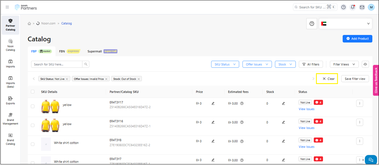 - FBN : This view shows all the SKUs for which you have transferred the stock to noon warehouse and the orders are fulfilled by noon on your behalf.