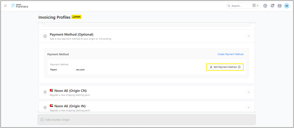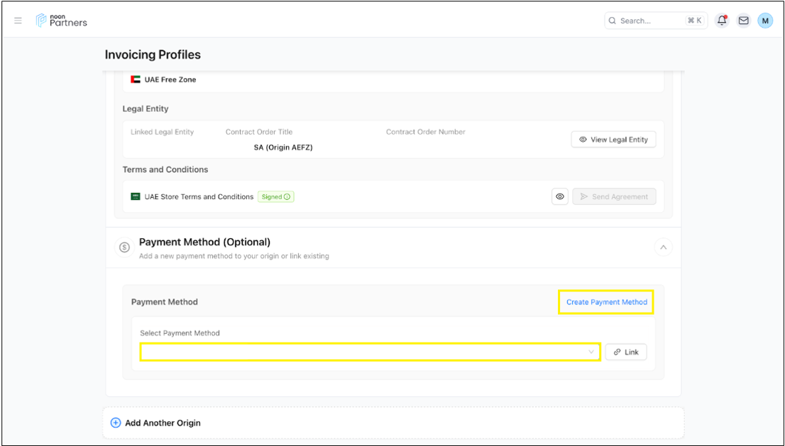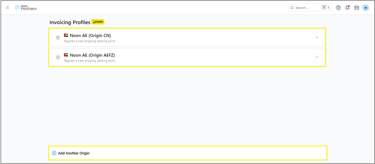 - This completes the process of adding an Invoicing Profile. You can see the profile you added at the top, and there is an option Add Another Origin to add a new profile at the bottom.