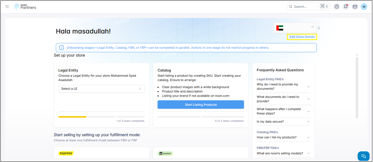 - On the Seller Lab homepage, click on the Edit Store Details option.