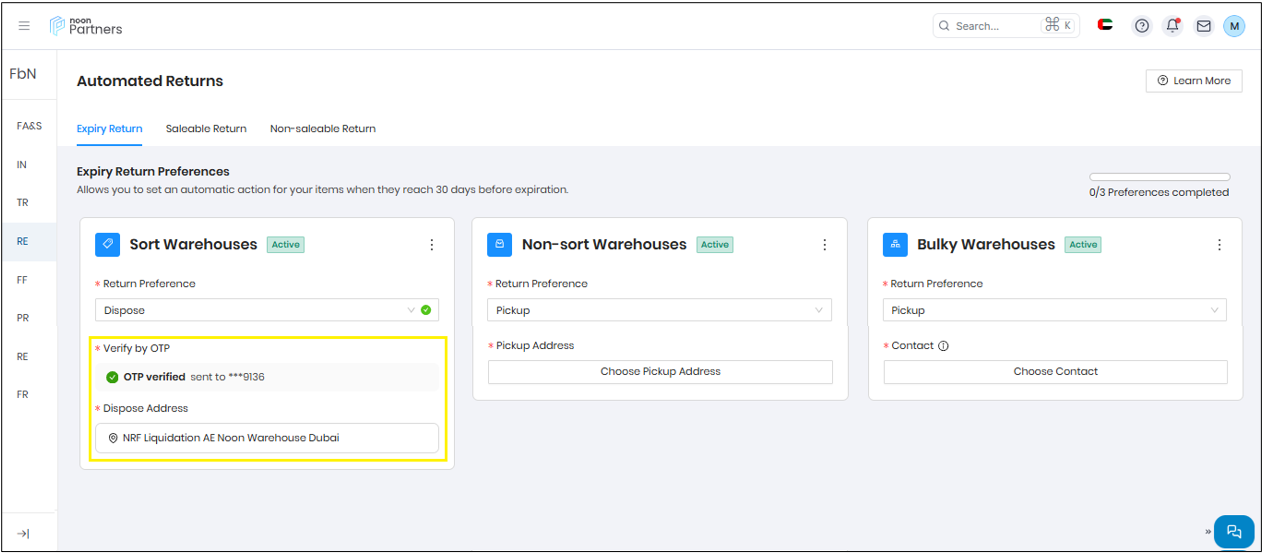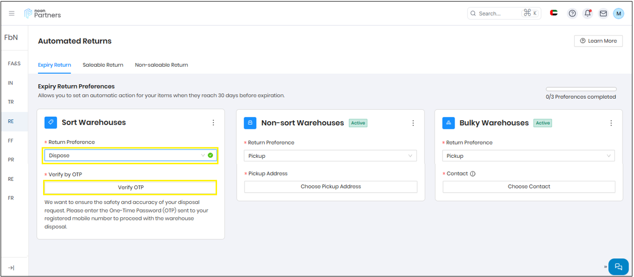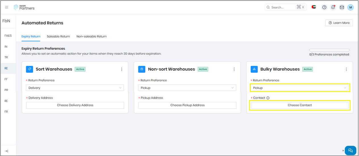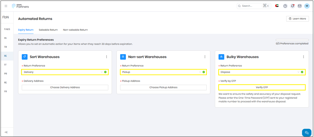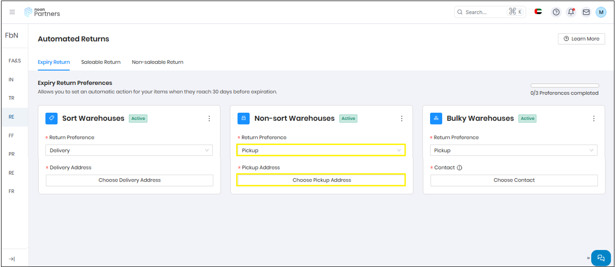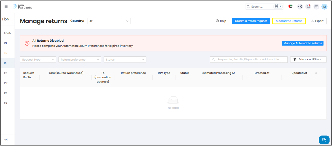 Managing your inventory efficiently and avoiding unnecessary storage fees is critical. Noon’s Automated Returns feature allows you to automate the retrieval of saleable and non-saleable items stored in fulfillment centers. This guide explains how to access and configure this feature, as well as additional actions you can take on the Automated Returns Dashboard.