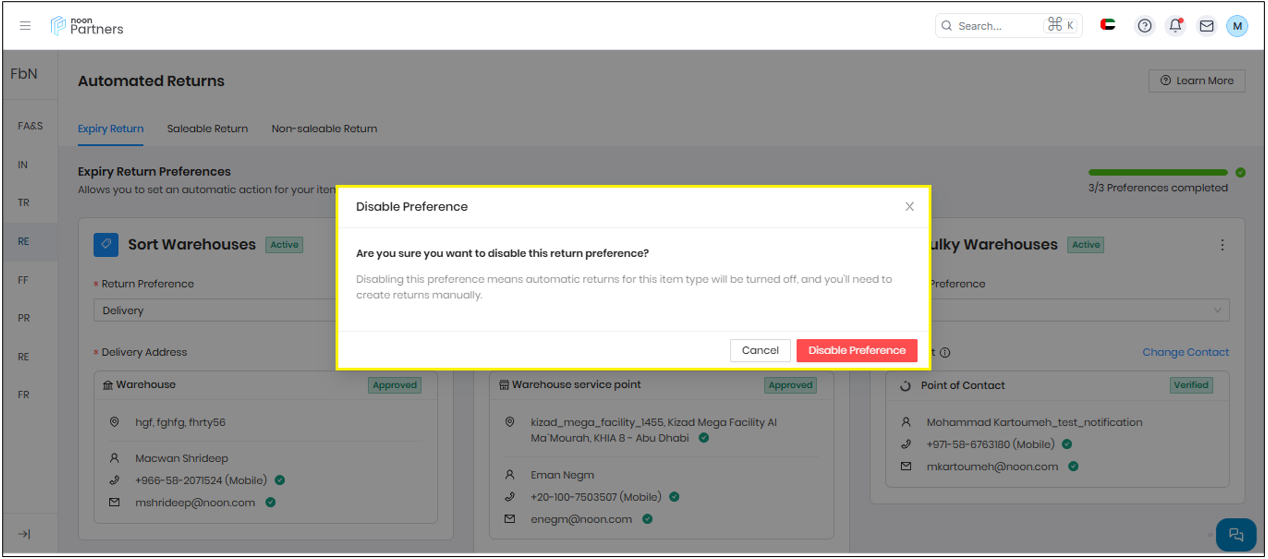 Note: You cannot disable Automated Returns for expired or aging non-saleable inventory stored in Noon warehouses.That’s it!