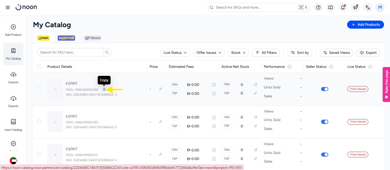 - You have an option to copy the PSKU or SKU number by using the copy option right next the SKU number.